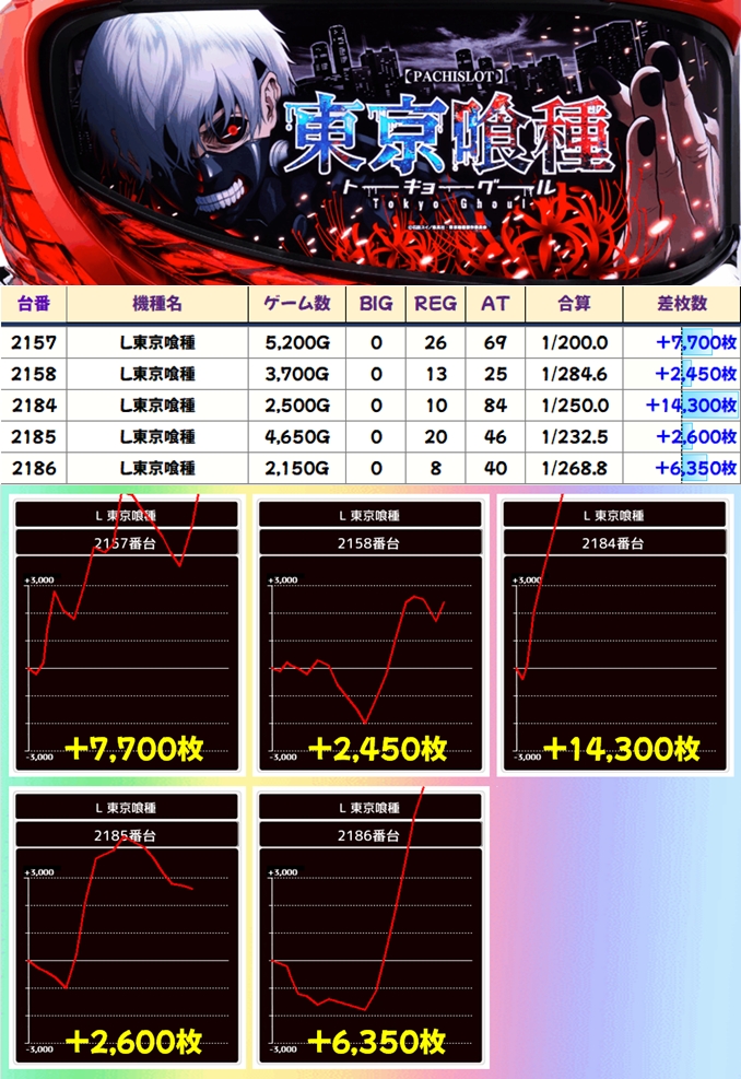 東京喰種(7/12台+)➡平均+1717枚