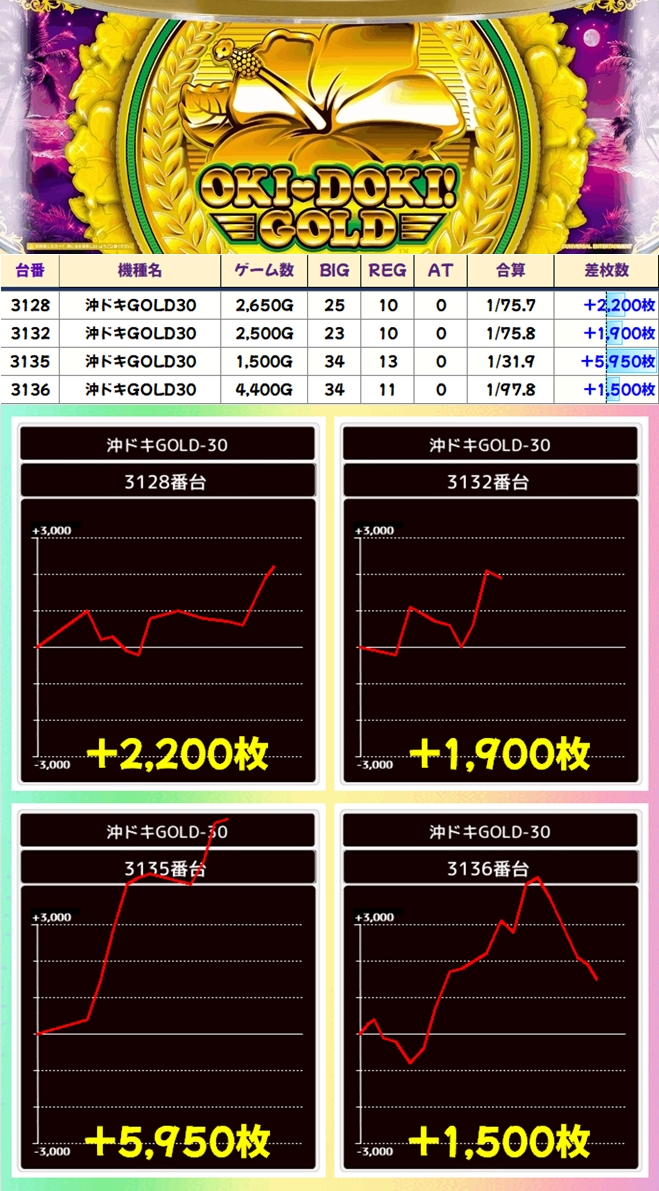沖ドキGOLD(9/15台+)➡平均+650枚
