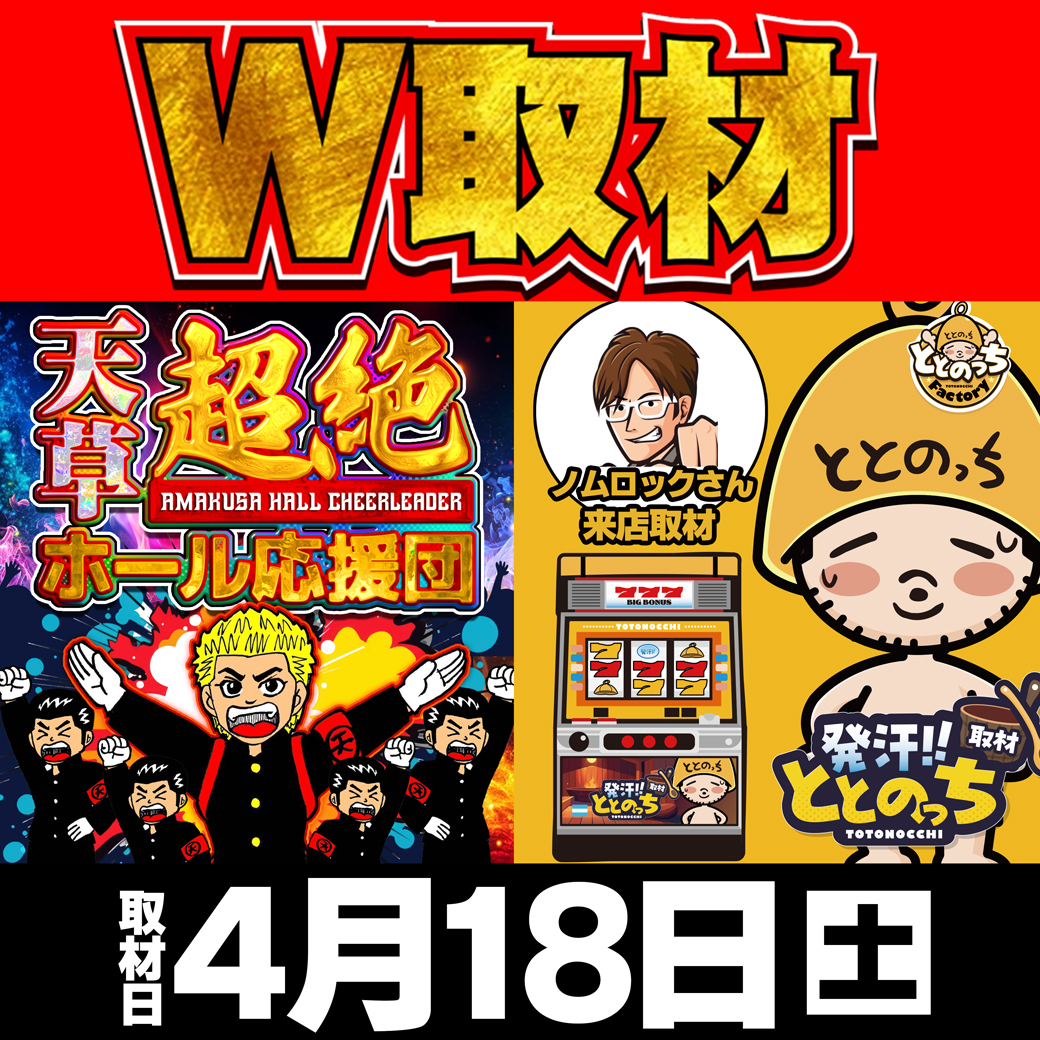 エスパス新大久保の⑧のつく日は全台系濃厚機種をはじめとした高配分仕掛けや並びなど多彩な仕掛けに期待できる1日。最近ではととのっち取材が必ず開催され、それに加えて今回は天草応援団のW開催でした!