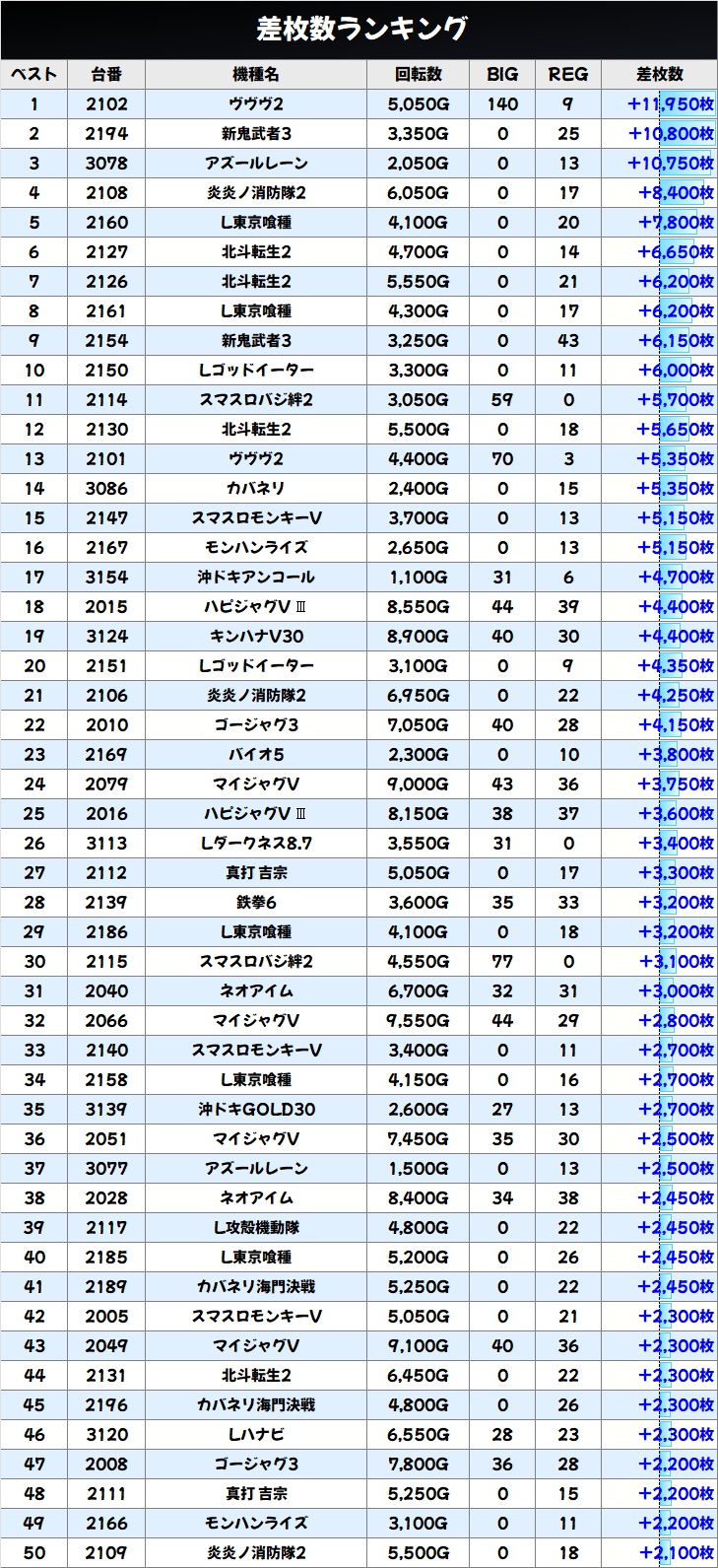 差枚数ランキングBEST50