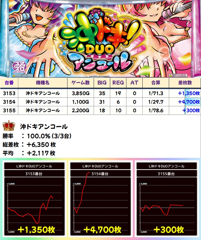 沖ドキアンコール(3/3台+)➡平均+2117枚