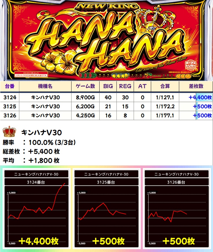 スマートキンハナ30(3/3台+)➡平均+1800枚