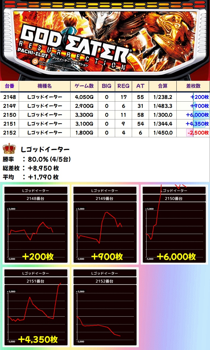 ゴッドイーター(4/5台+)➡平均+1790枚