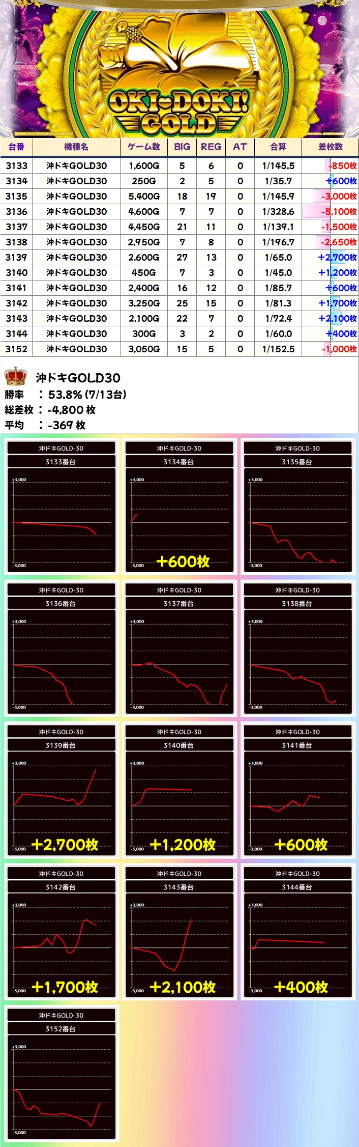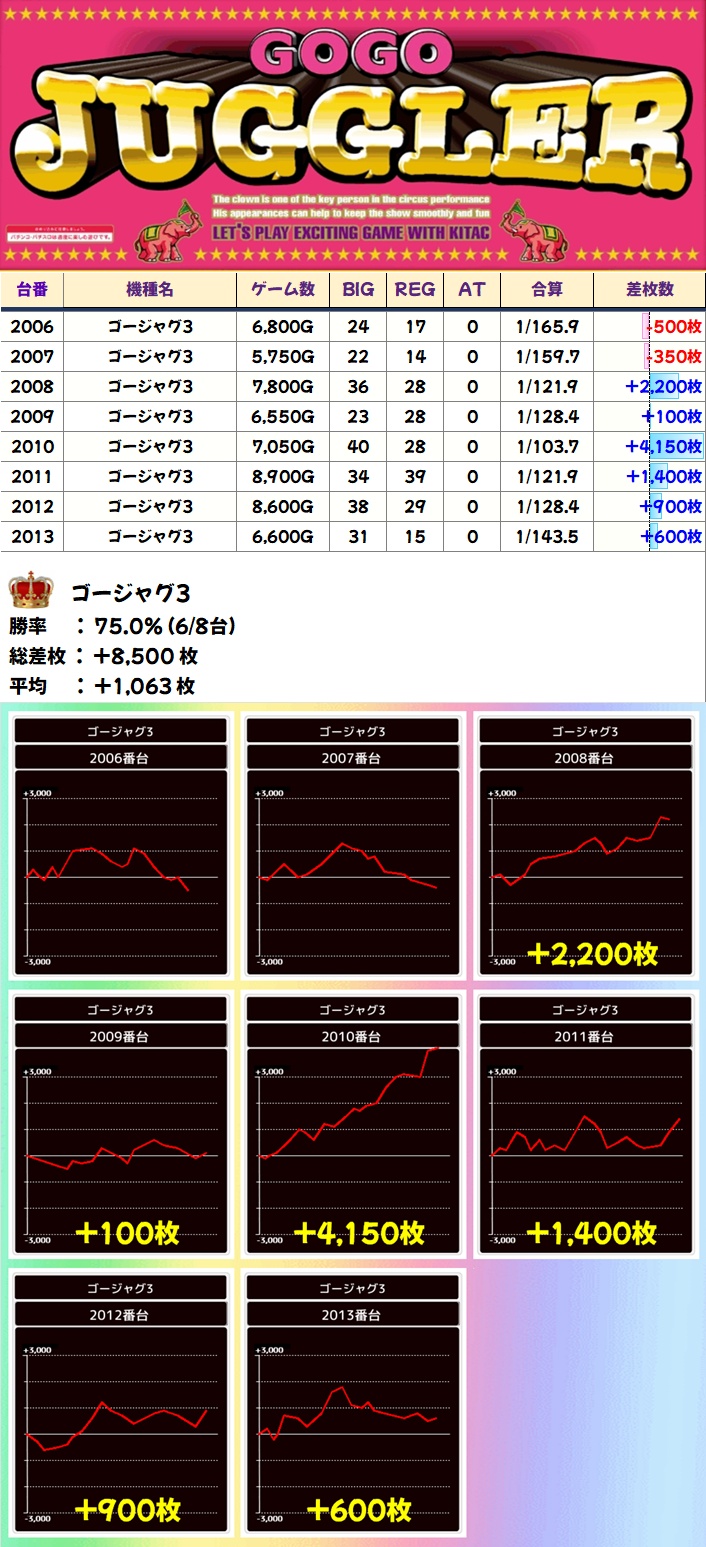 ゴージャグ3(6/8台+)➡平均+1,063枚