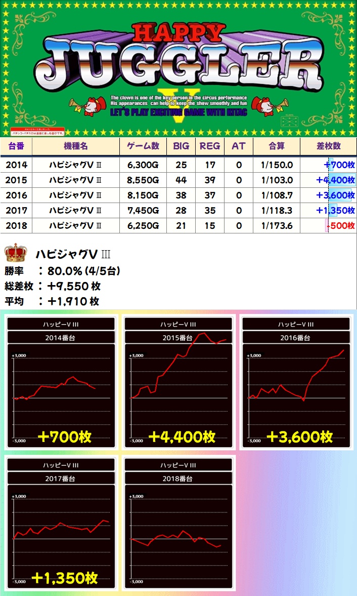 ハピジャグ(4/5台+)➡平均+1,910枚