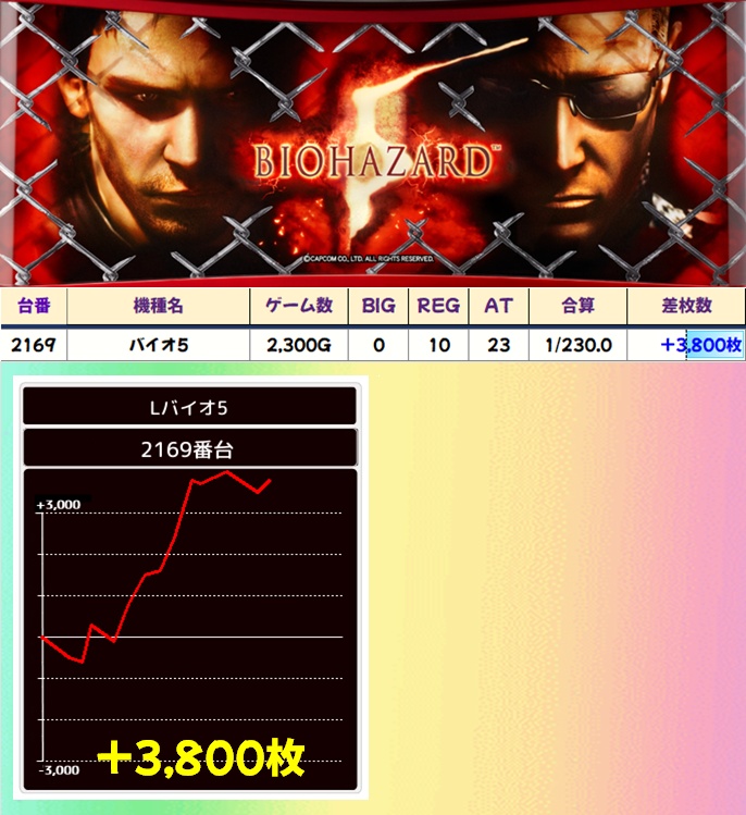 バイオ5(2/3台+)➡平均+667枚