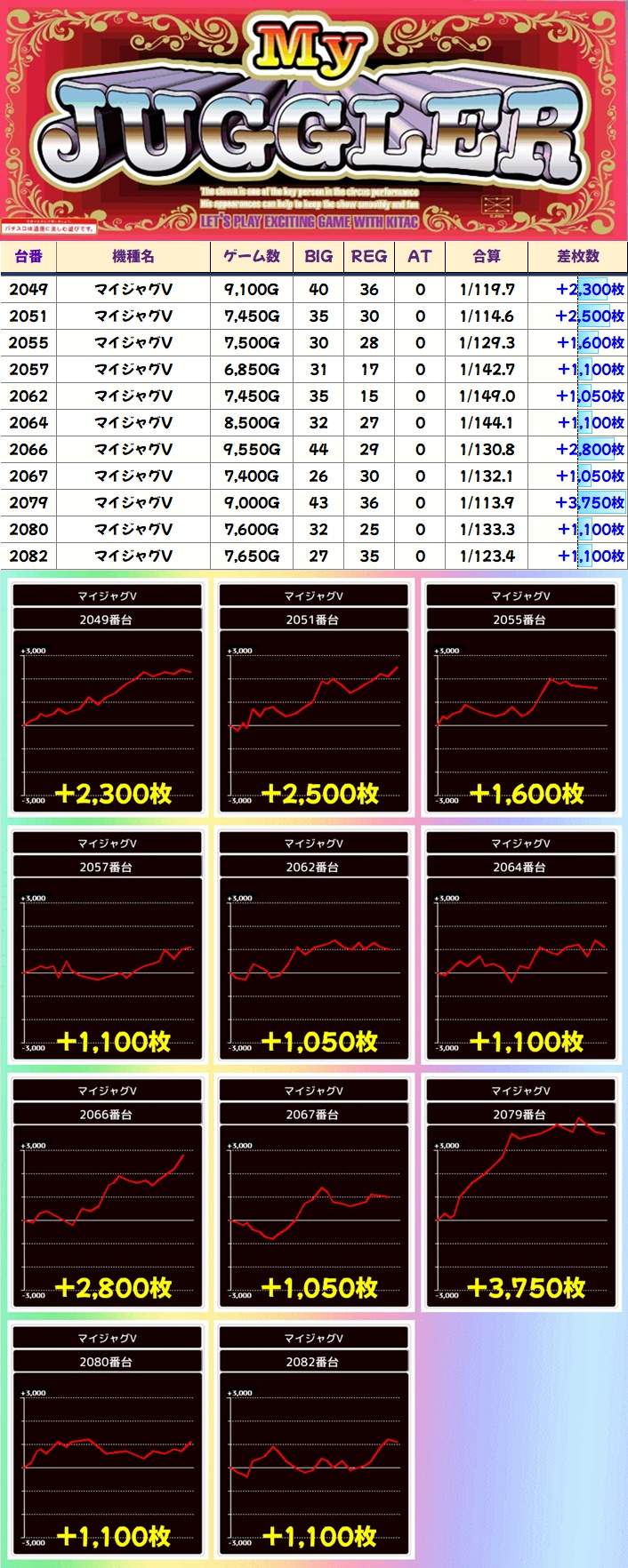 安定の8の付く日+天草応援団+ととのっち取材と言う事で全体差枚もプラスで、3000枚超が30台以上!