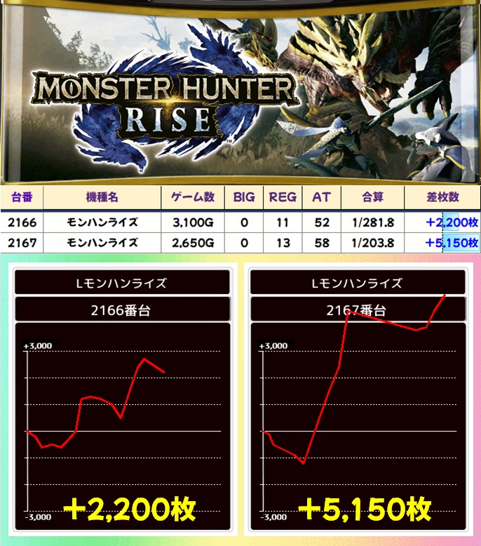モンハンライズ(2/5台+)➡平均+930枚