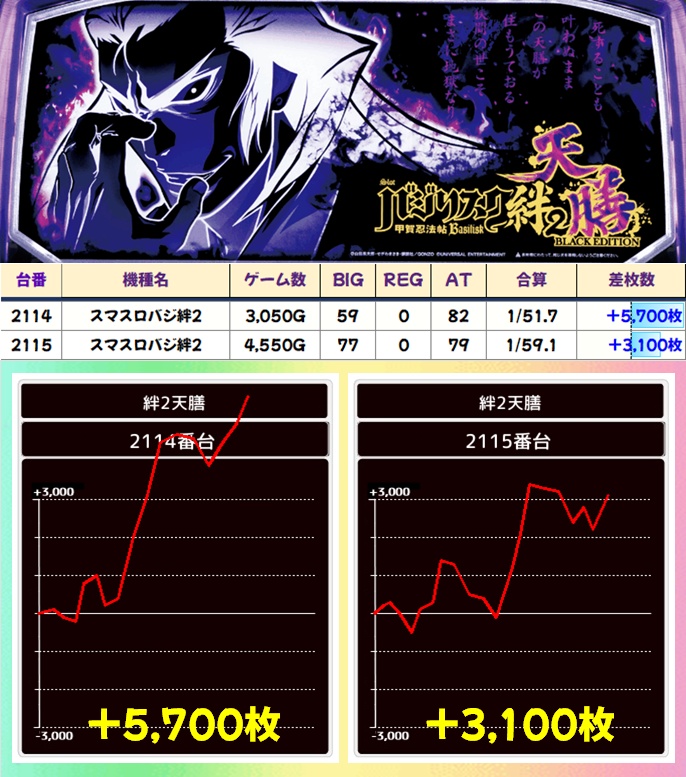 バジ絆2天膳(3/4台+)➡平均+1838枚