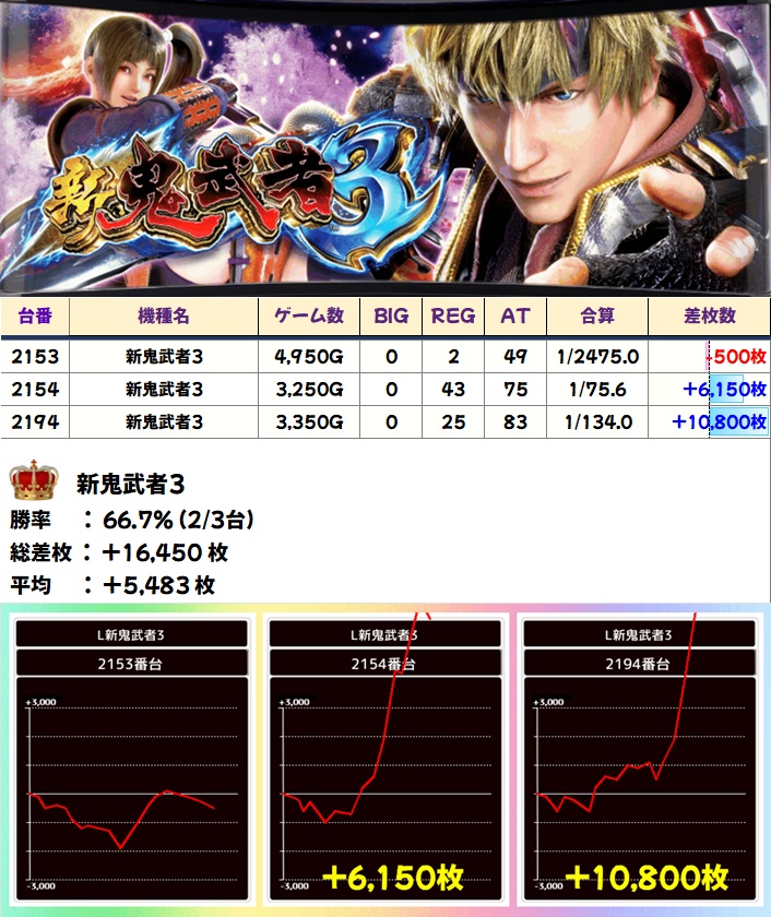 新鬼武者3(2/3台+)➡平均+5483枚