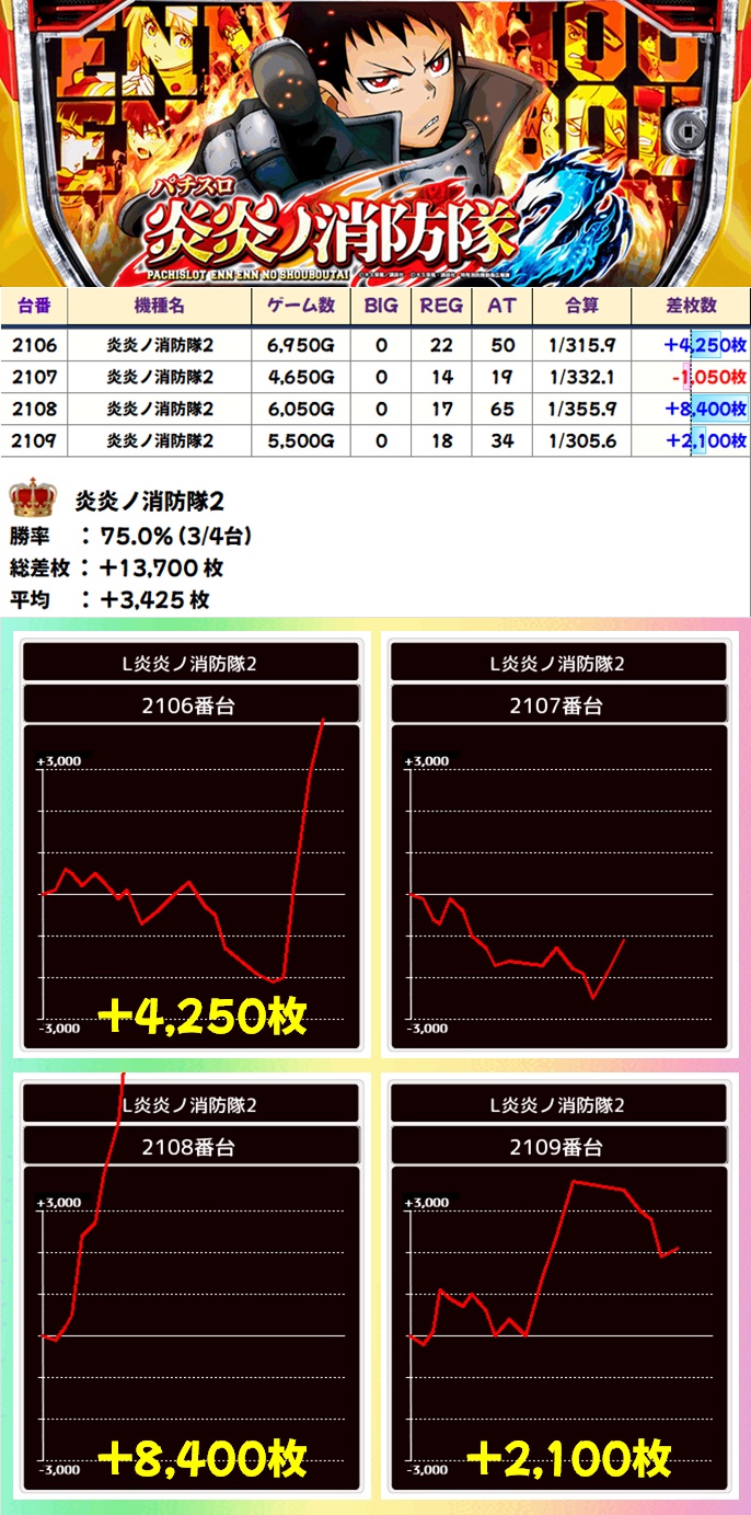 炎炎ノ消防隊2(3/4台+)➡平均+3425枚