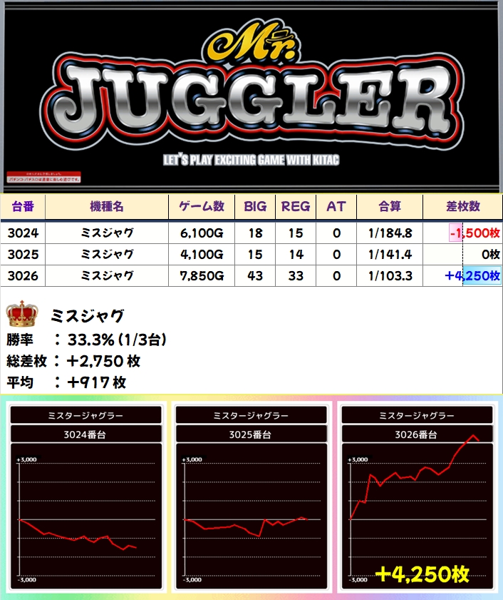 第3土曜は直近が総差枚10万枚超ばかりなので、かなり優先度高めに打ちに行きたい日の一つですよ!