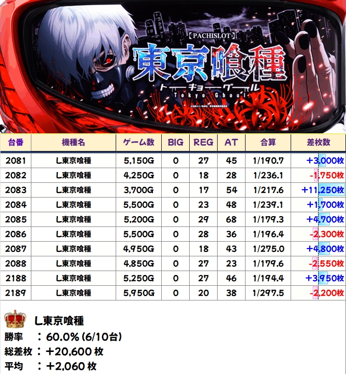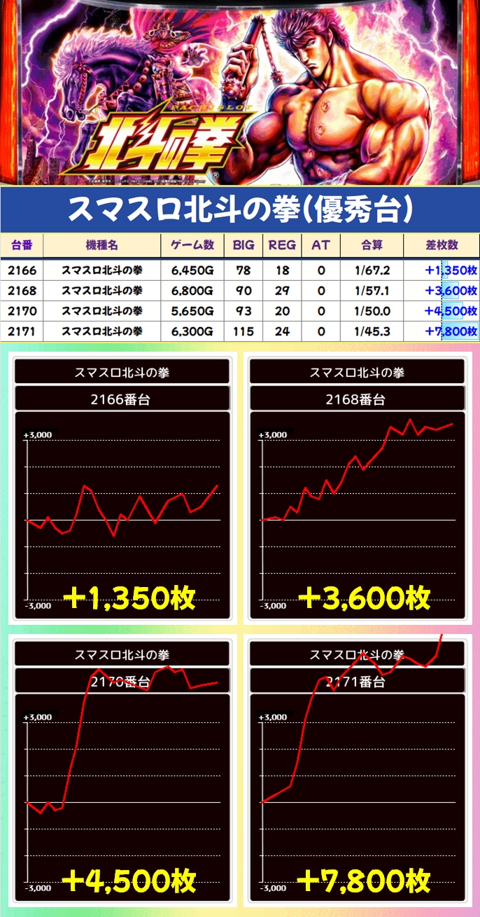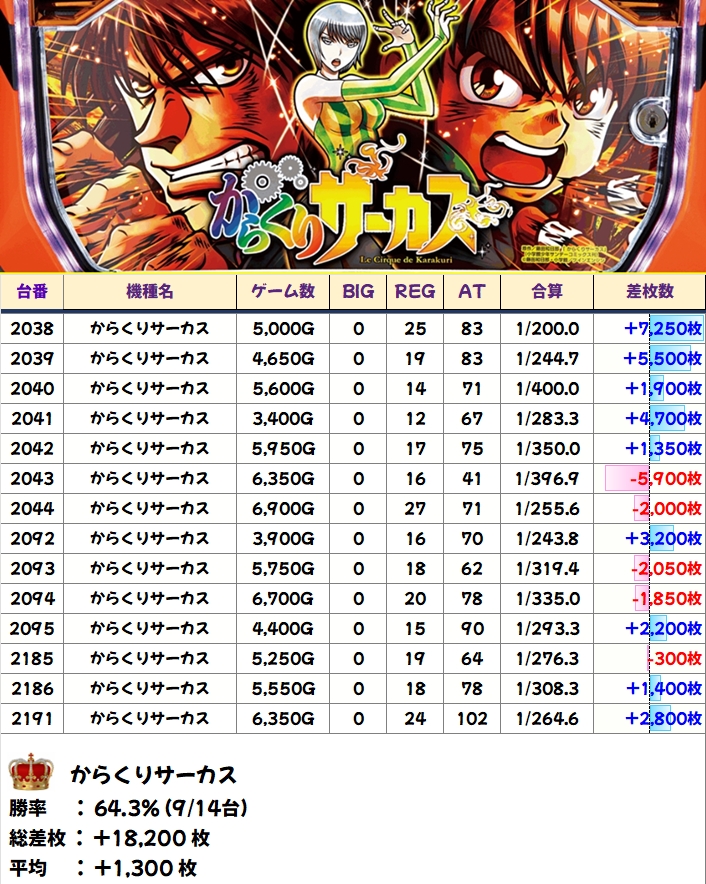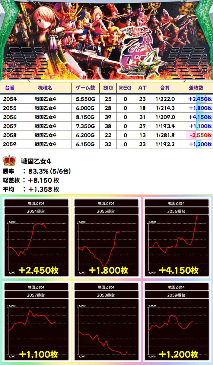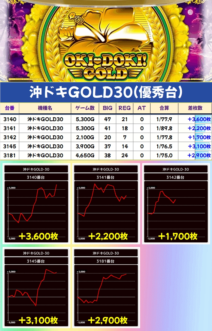 全機種平均1000枚は越えており、多くの台がしっかりと稼働する結果に!