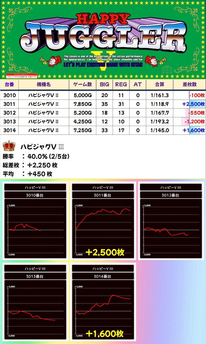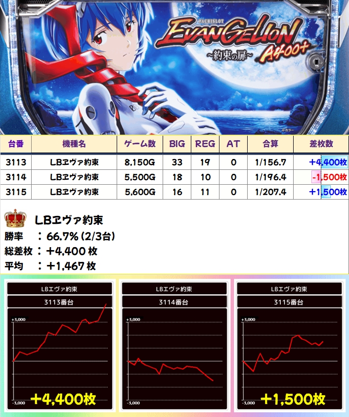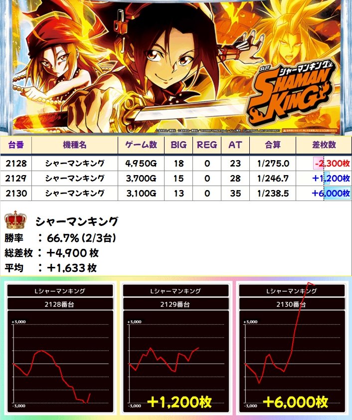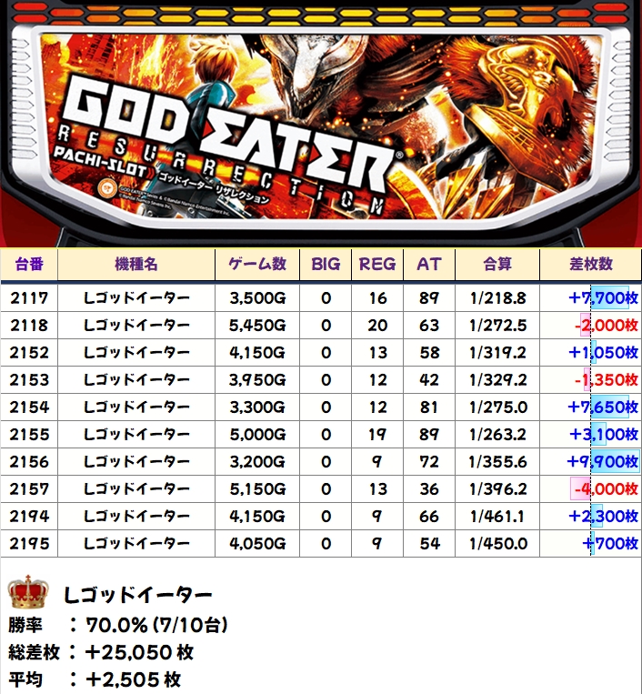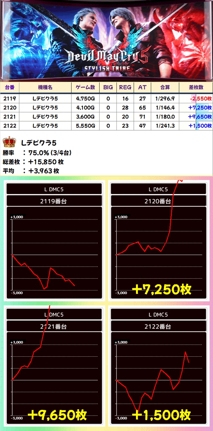 全機種平均1000枚は越えており、多くの台がしっかりと稼働する結果に!