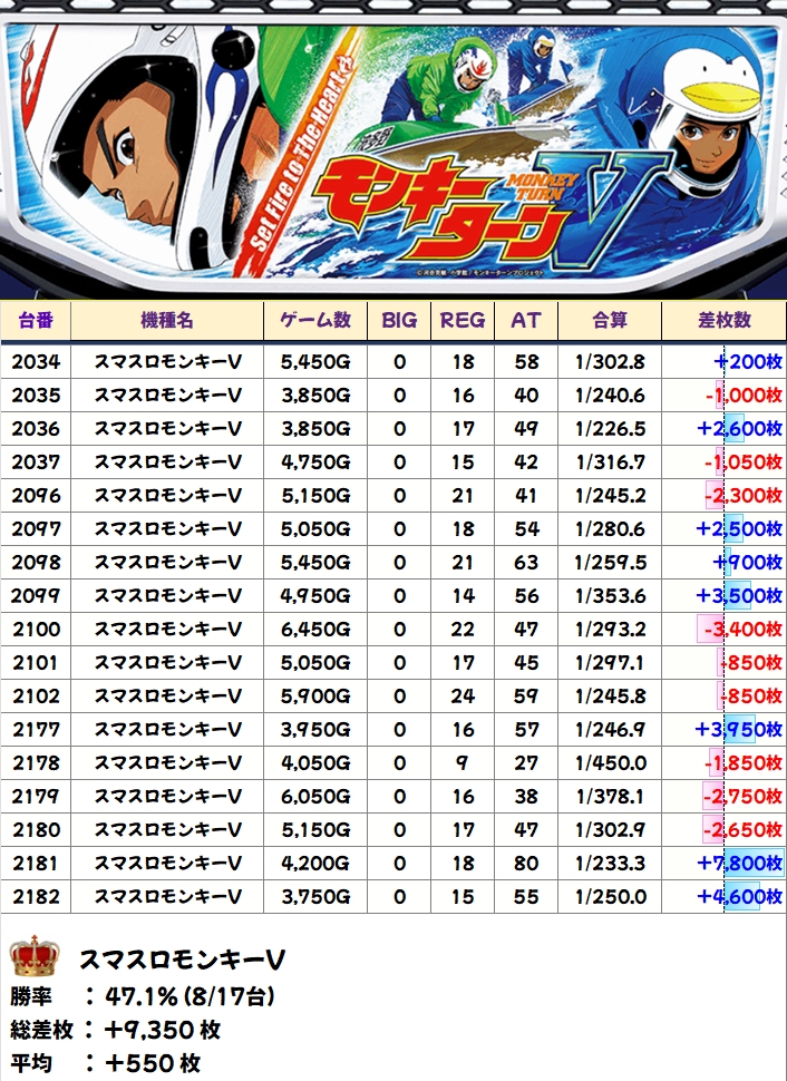 全台系濃厚機種は4機種あり。今回はあまり特日では対象になっていないスマスロが優秀でした。