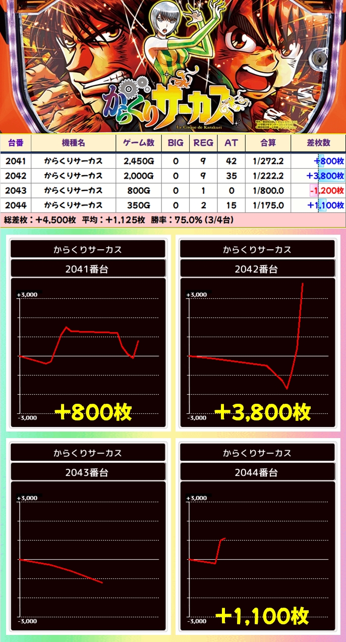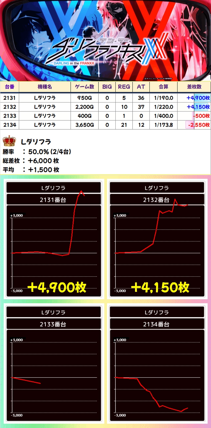 エンタ機種や人気スマスロから優秀並び多数!しっかりと並びだと判断し結果を残した並びが多いですが、稼働不足となった不発台もあったのでまだ立ち回りの余地はありますよ。