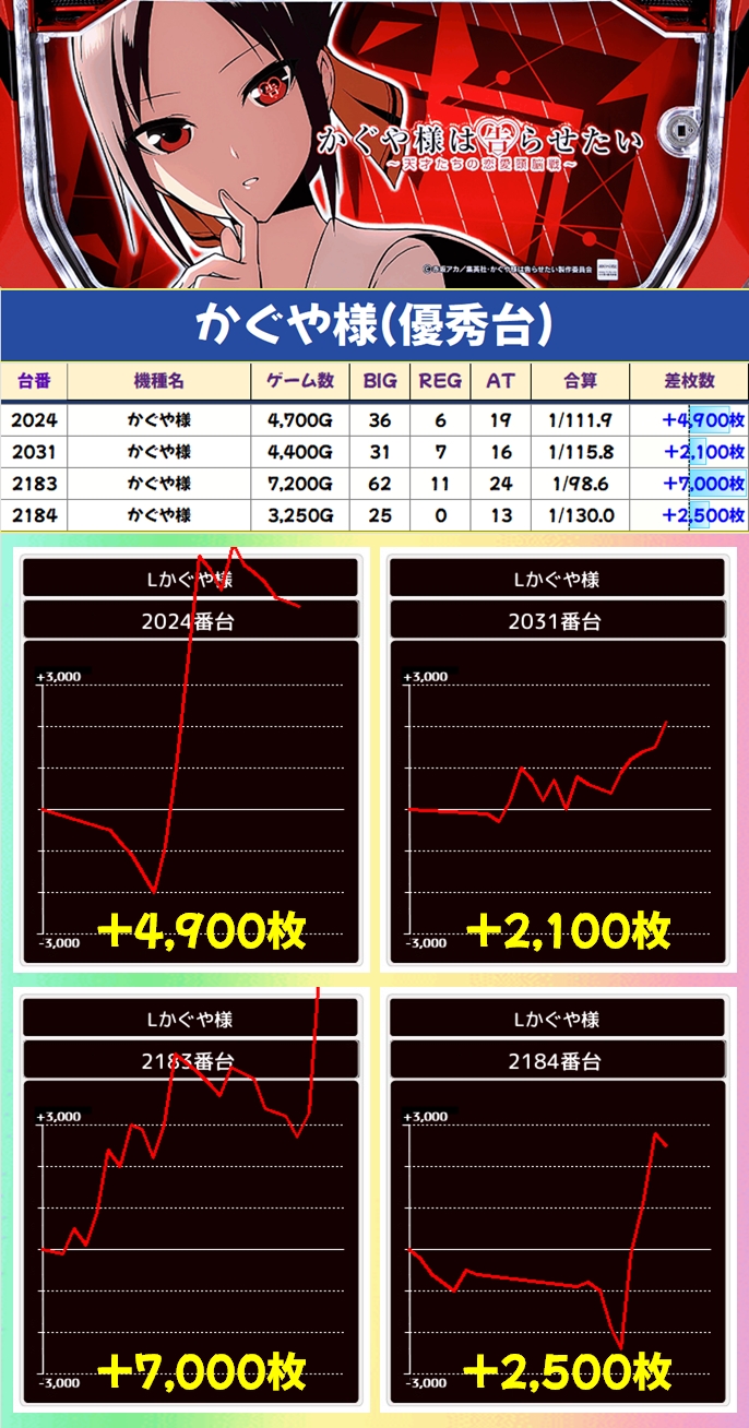下記機種は大量獲得台が複数あったので、1/3系ほどは優秀台が使われていた可能性あり!仕掛けが使われやすい機種なので、頭に入れておいて迷った際は狙ってみるのもあり!