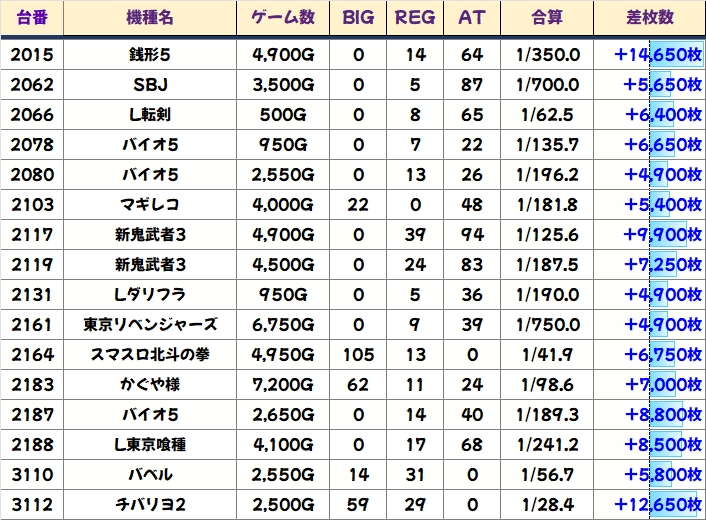 今回は過去の傾向以外にも高配分以上の機種を大量に確認できました。それでは結果を見ていきましょう!