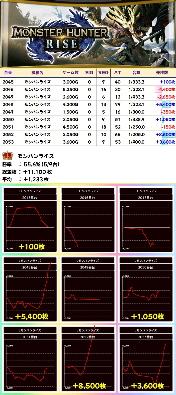 モンハンライズ(5/9台+)⏩Ave+1,233枚