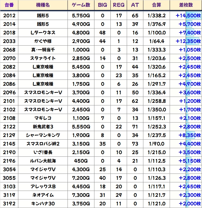 今回は過去の傾向以外にも高配分以上の機種を大量に確認できました。それでは結果を見ていきましょう!