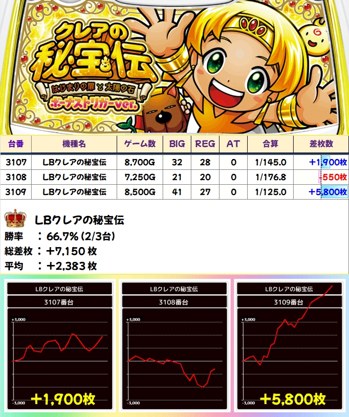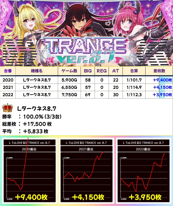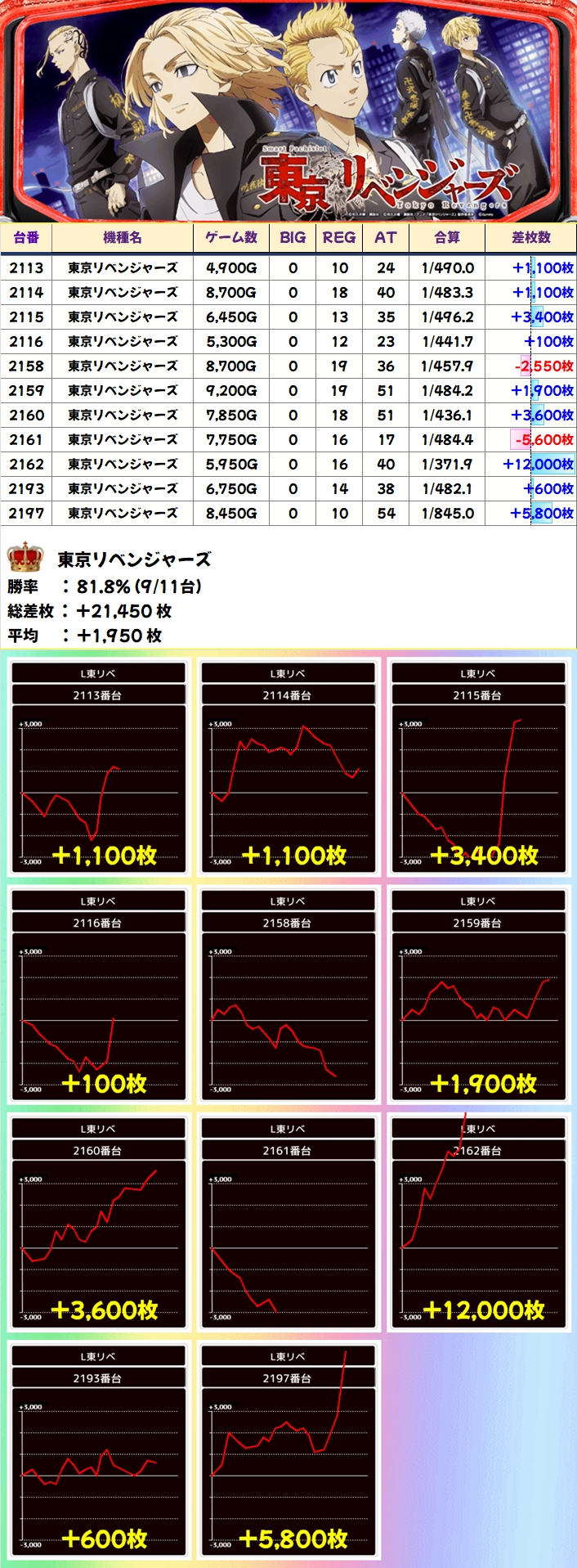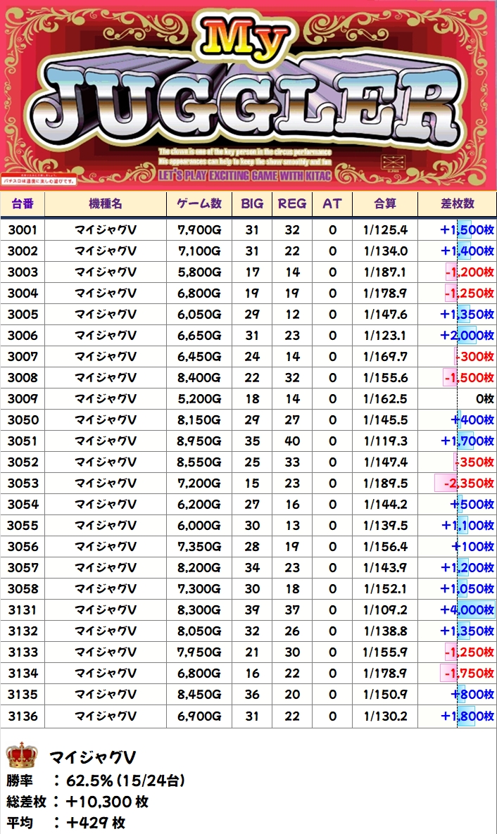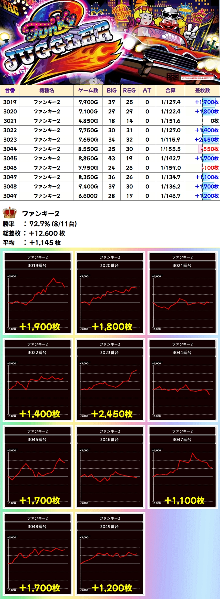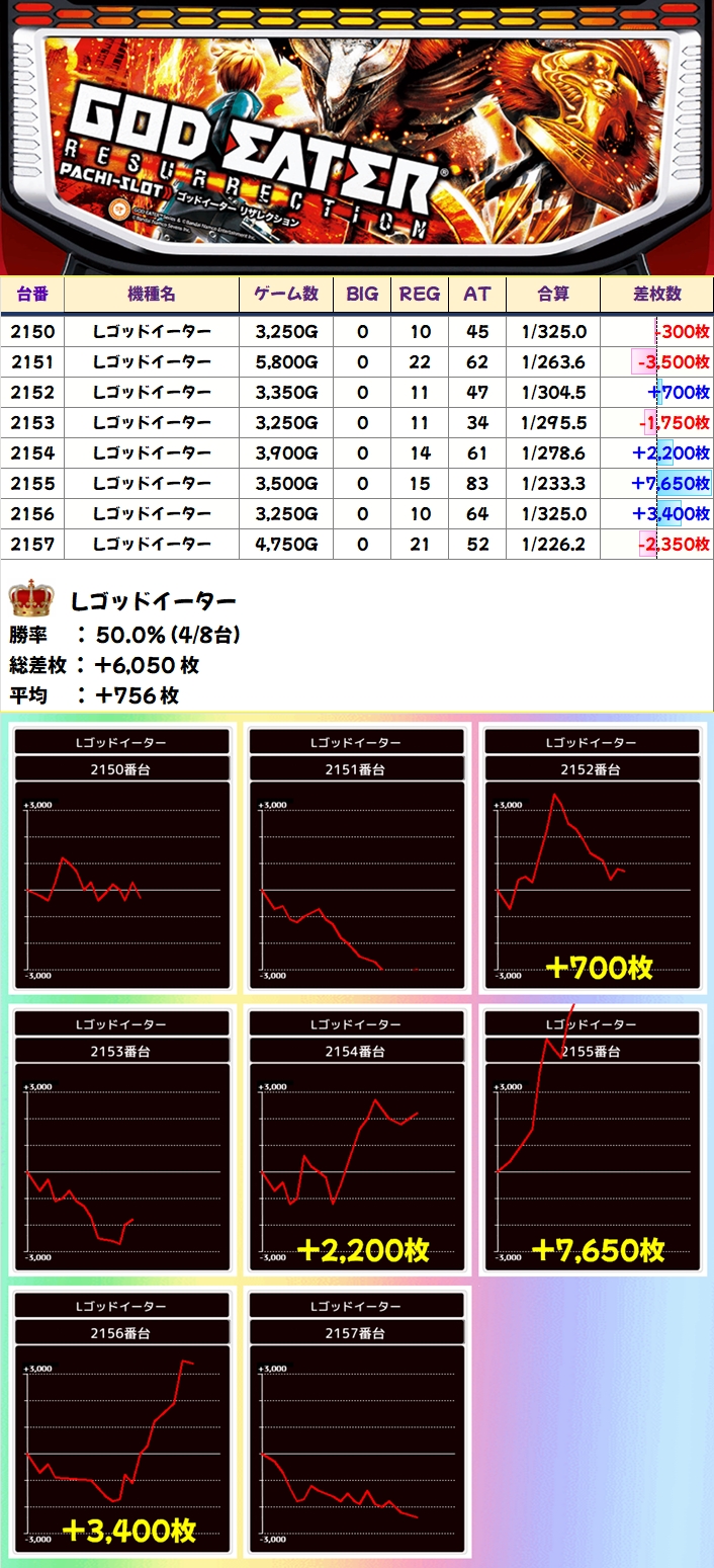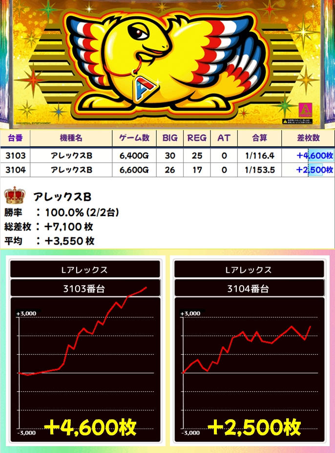 今回もそれらを中心に優秀台が多数あり、台平均は100枚超と好成績を残しました。