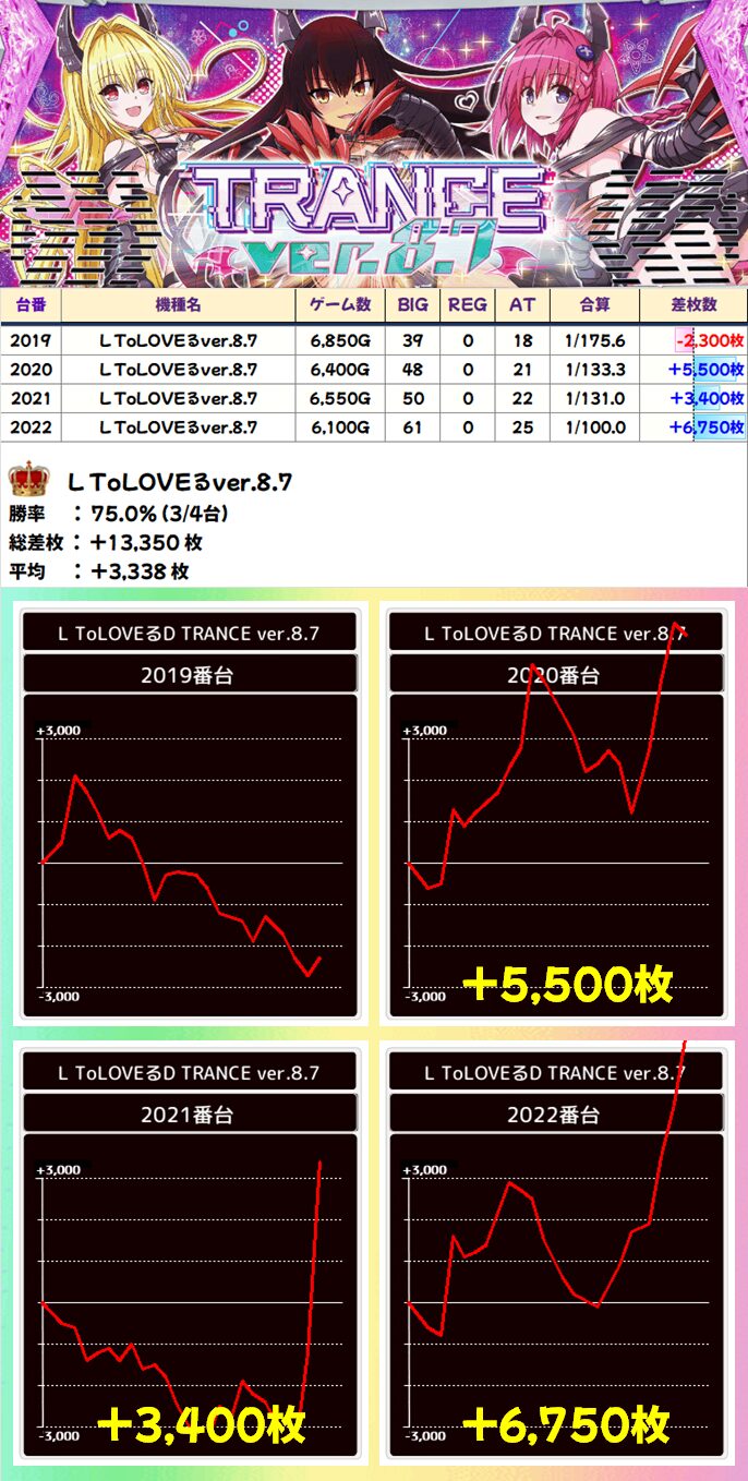 L ToLOVEるver.8.7 (3/4台+) ➡平均 +3,338枚