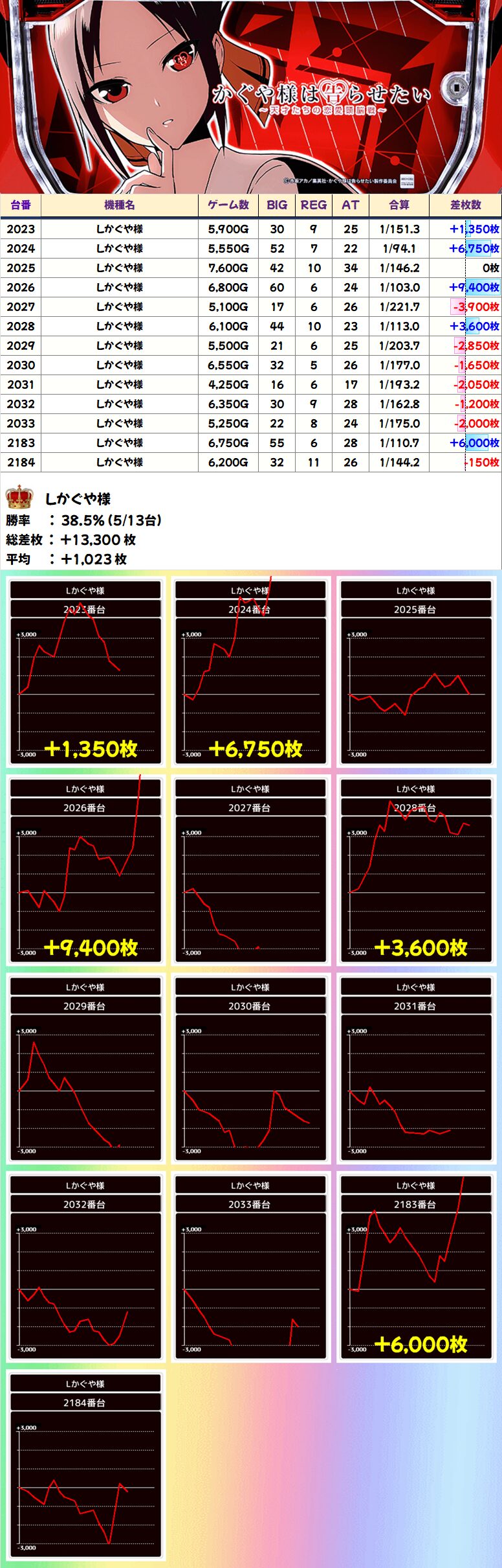 Lかぐや様 (5/13台+) ➡平均 +1,023枚