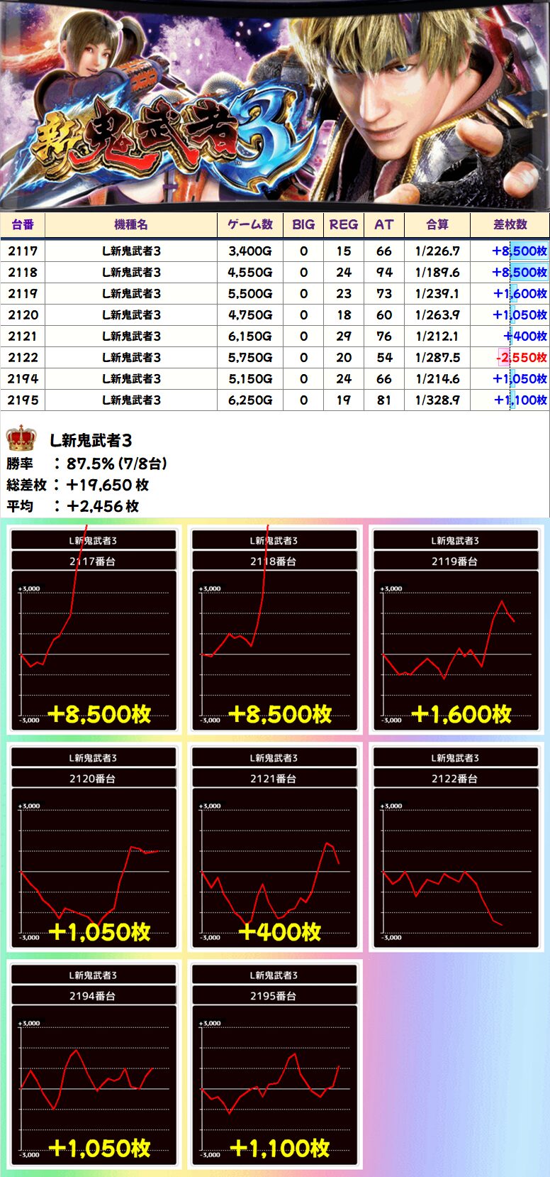 L新鬼武者3 (7/8台+) ➡平均 +2,456枚