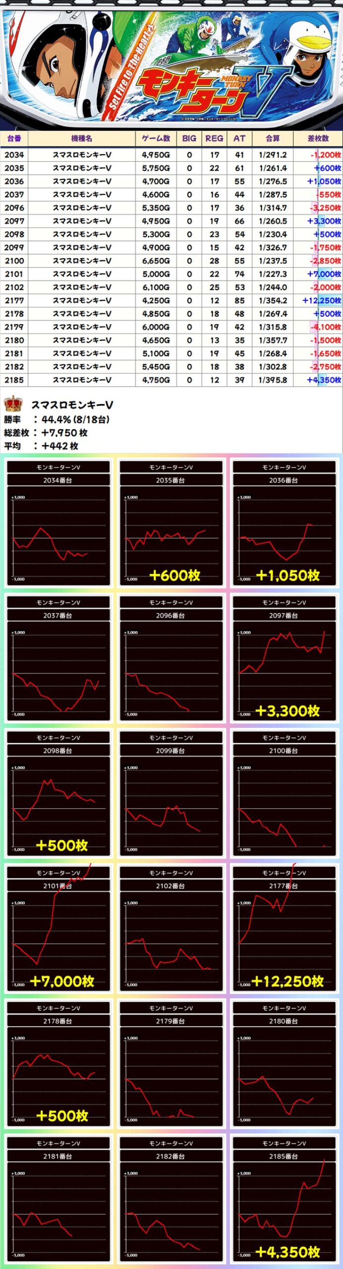 スマスロモンキーV (8/18台+) ➡平均 +442枚