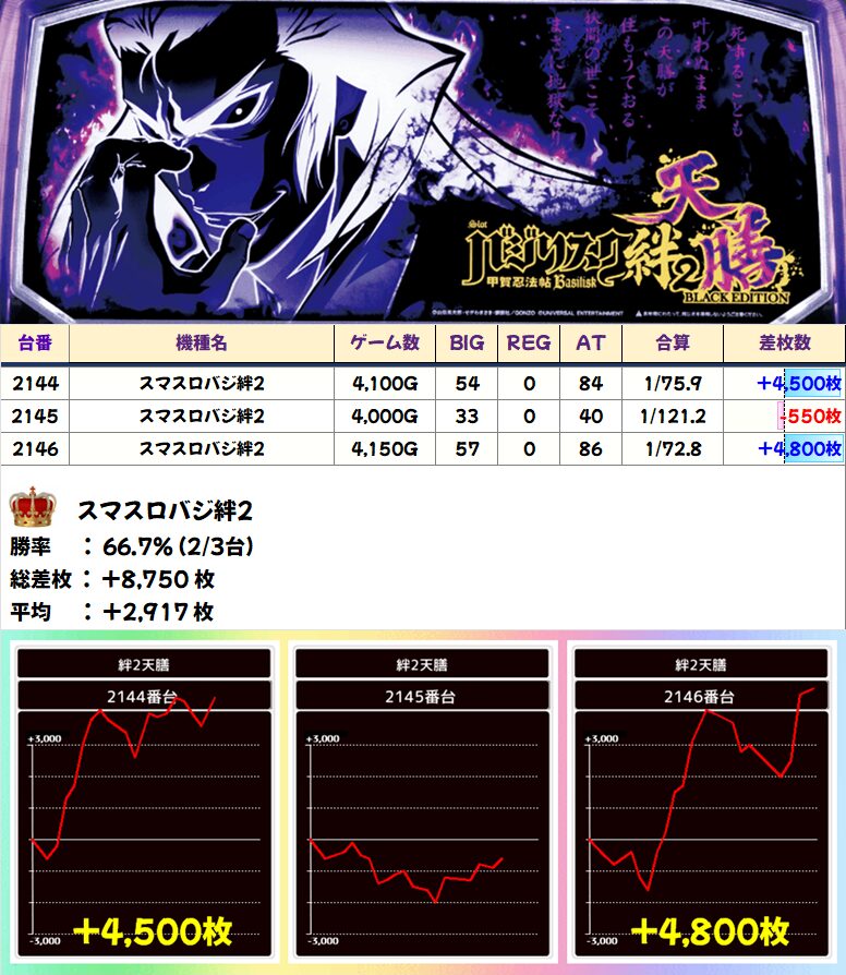 スマスロバジ絆2 (2/3台+) ➡平均 +2,917枚