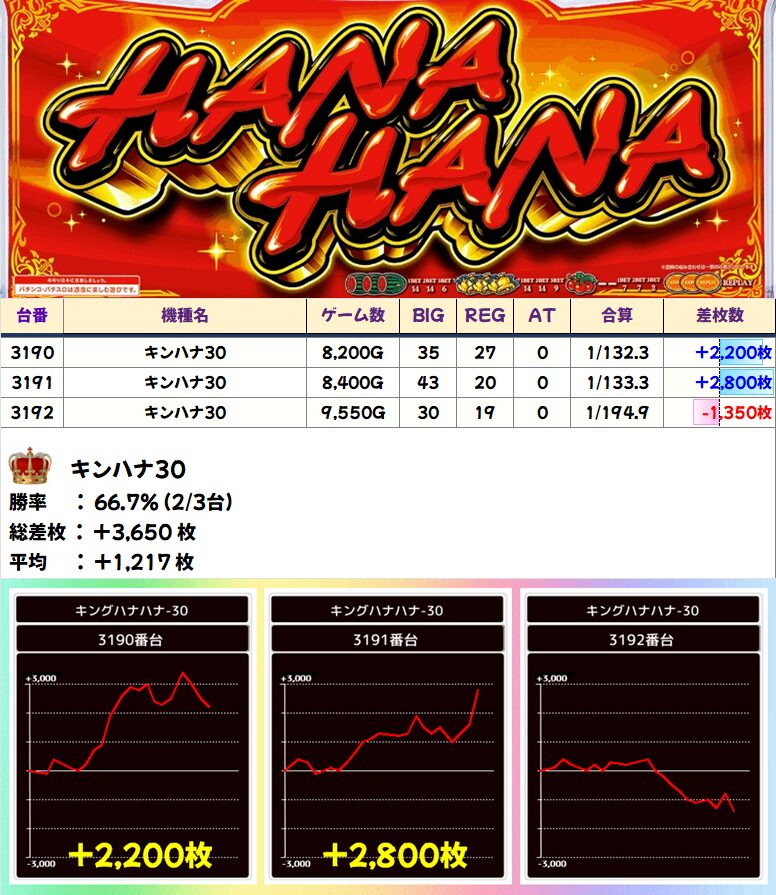 キンハナ30 (2/3台+) ➡平均 +1,217枚
