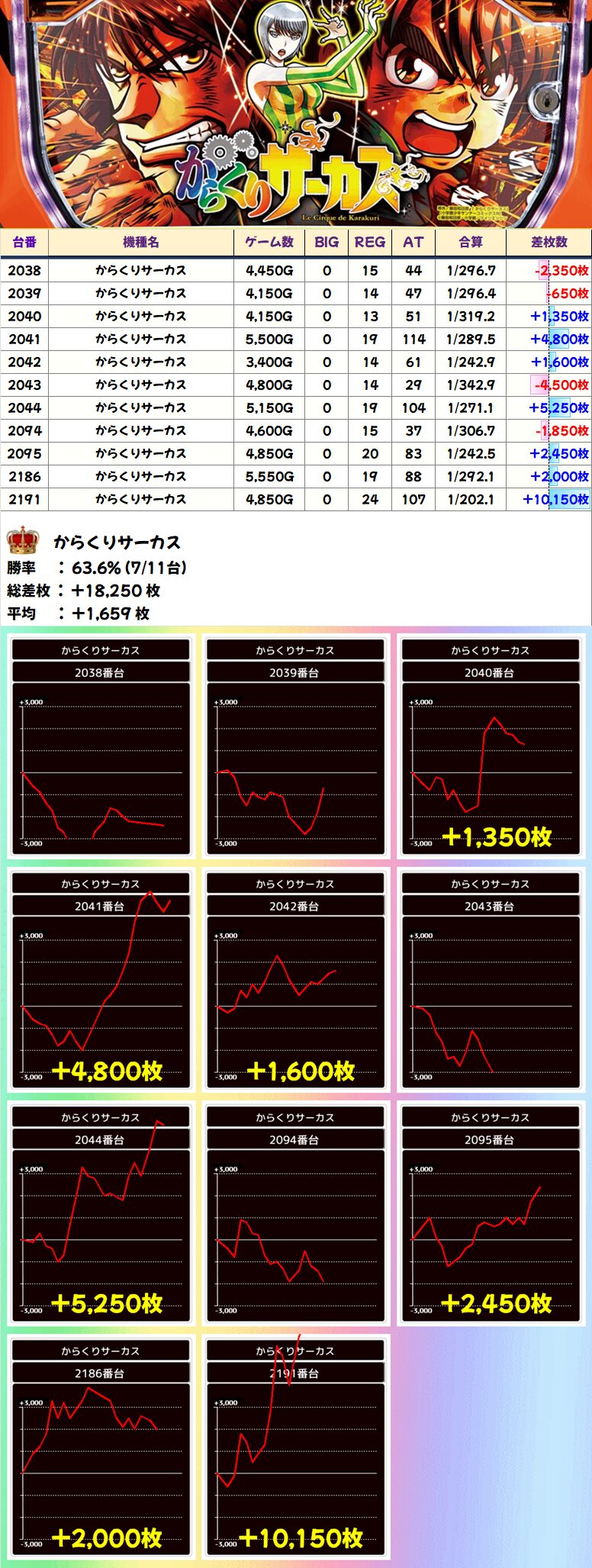 からくりサーカス (7/11台+) ➡平均 +1,659枚
