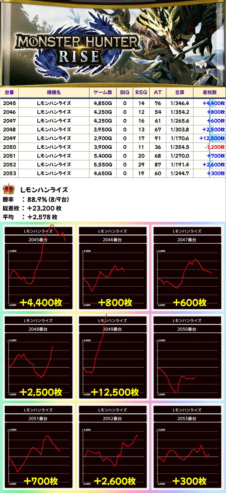 Lモンハンライズ (8/9台+) ➡平均 +2,578枚