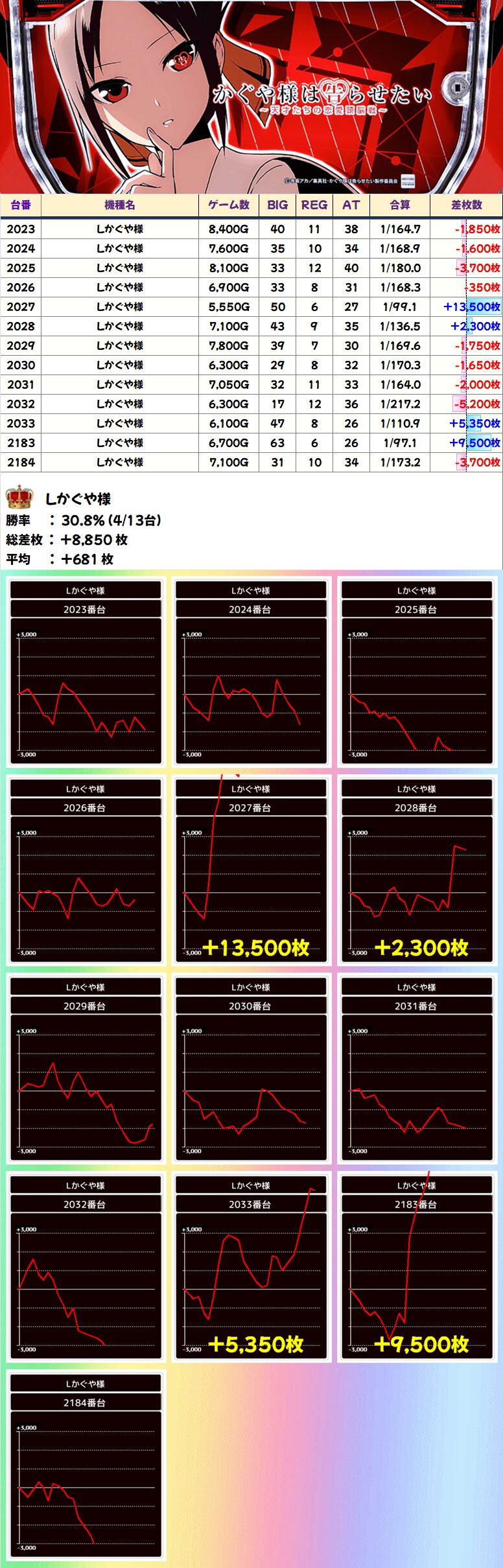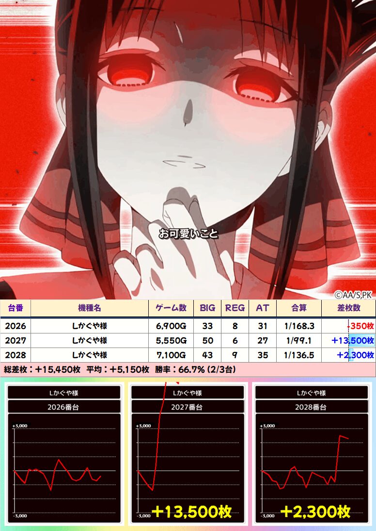 Lかぐや様 (4/13台+) ➡平均 +681枚