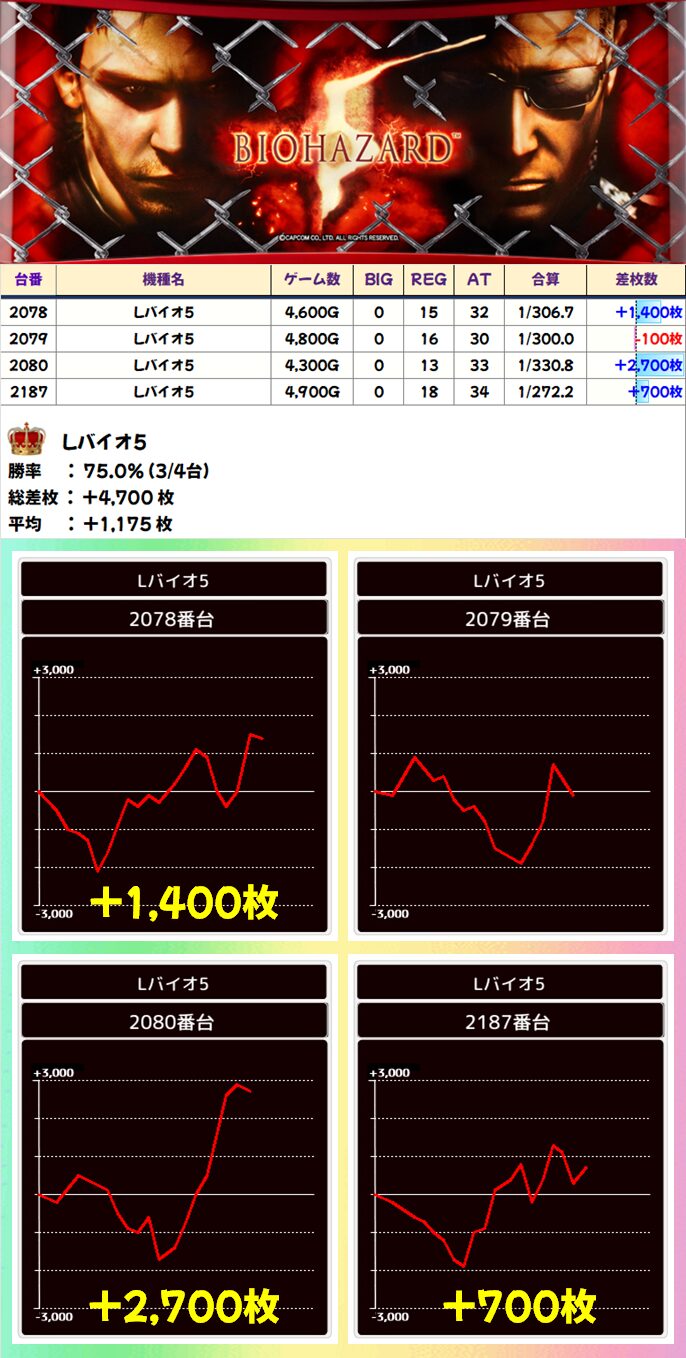 Lバイオ5 (3/4台+) ➡平均 +1,175枚