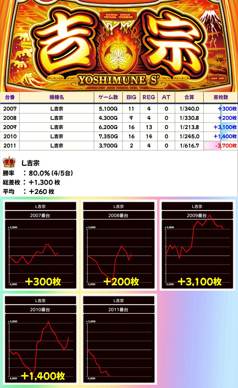 L吉宗 (4/5台+) ➡平均 +260枚