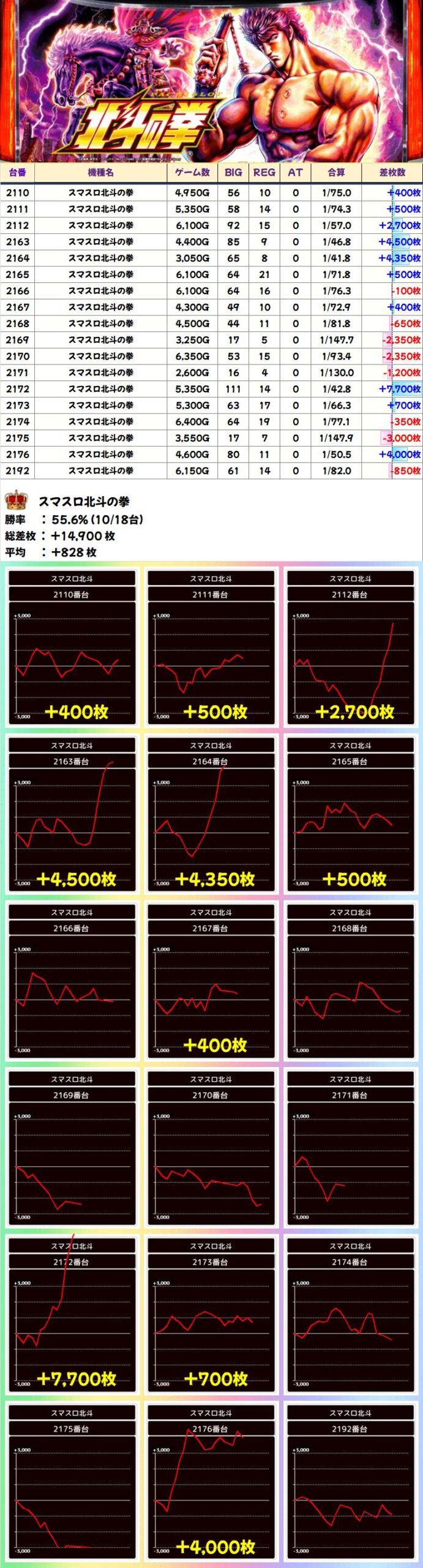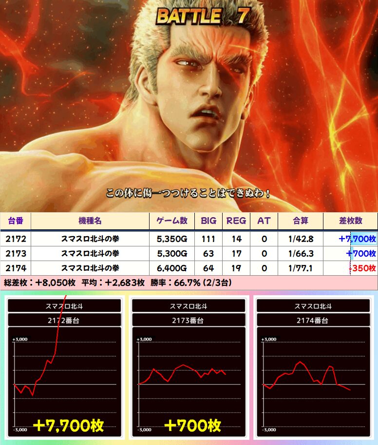 スマスロ北斗の拳 (10/18台+) ➡平均 +828枚