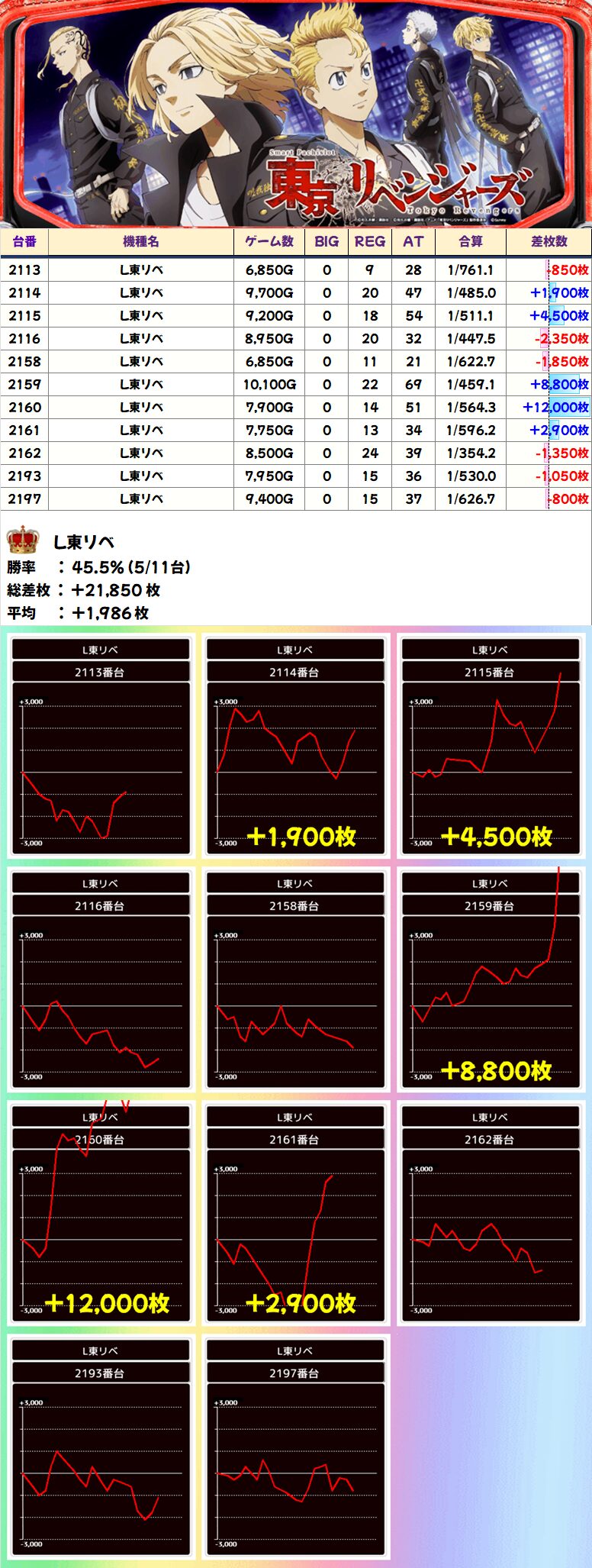 L東リベ (5/11台+) ➡平均 +1,986枚