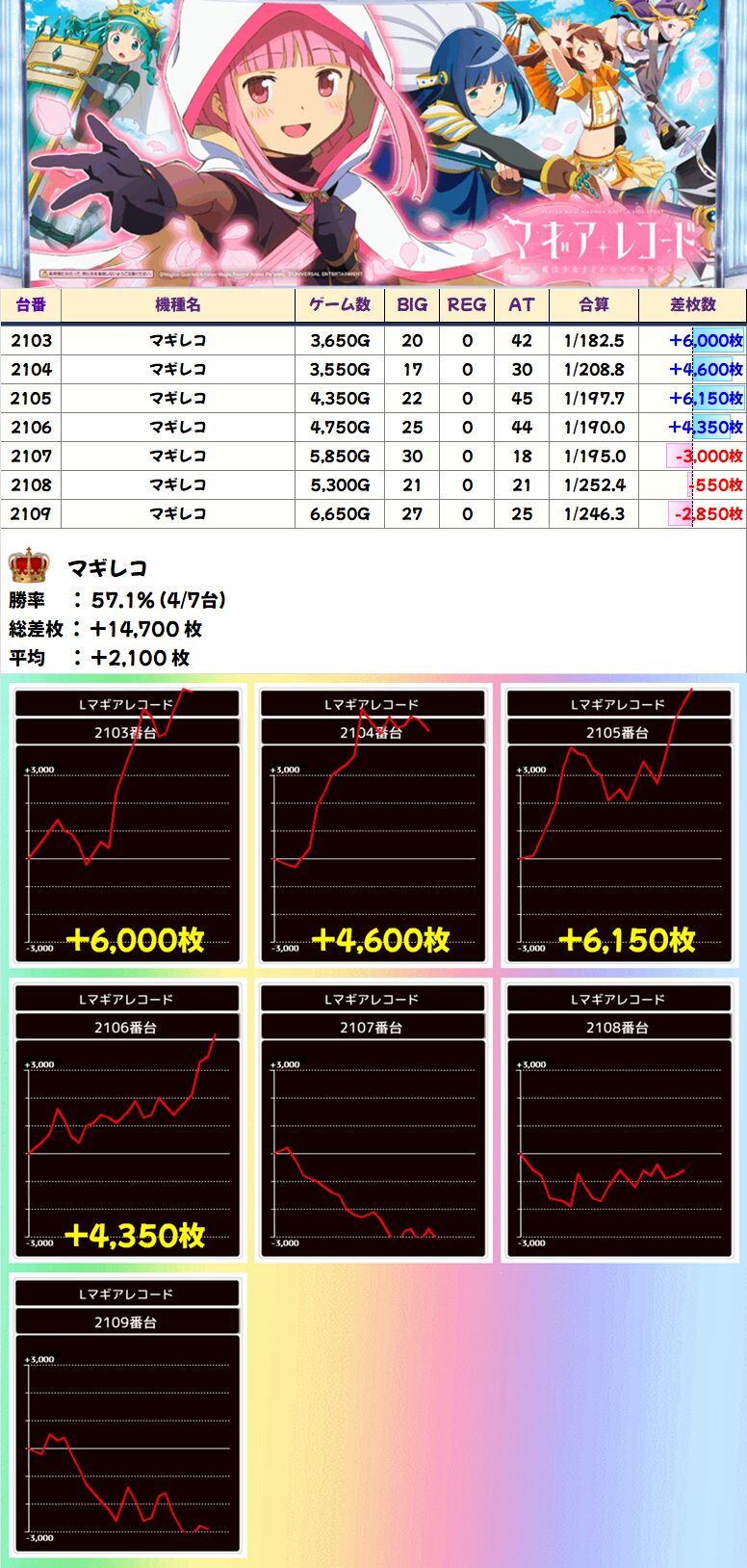 マギレコ (4/7台+) ➡平均 +2,100枚
