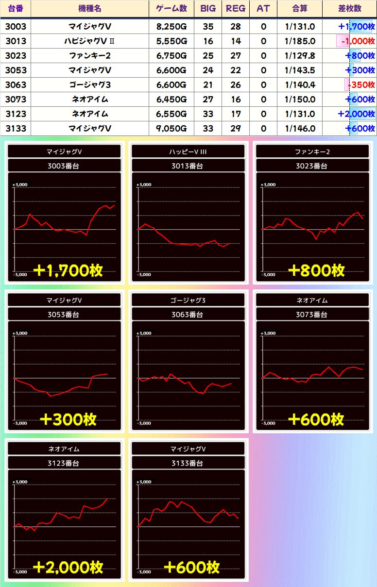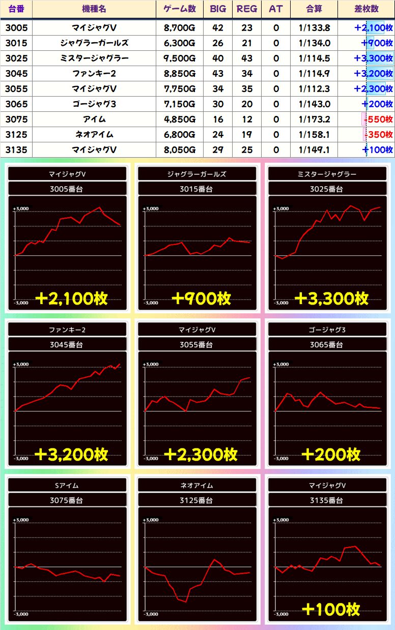 5のつく日ということもあってジャグには優秀末尾が2本アリ!今回は③⑤が好結果を残しました。