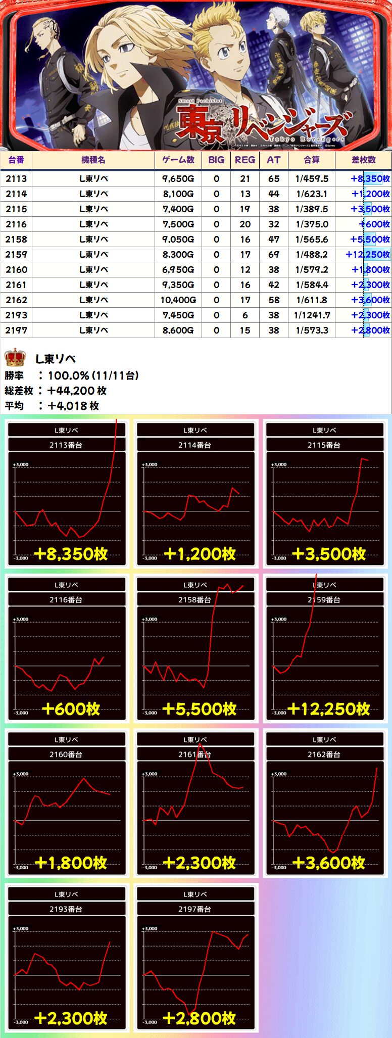 L東リベ (11/11台+) ➡平均 +4,018枚