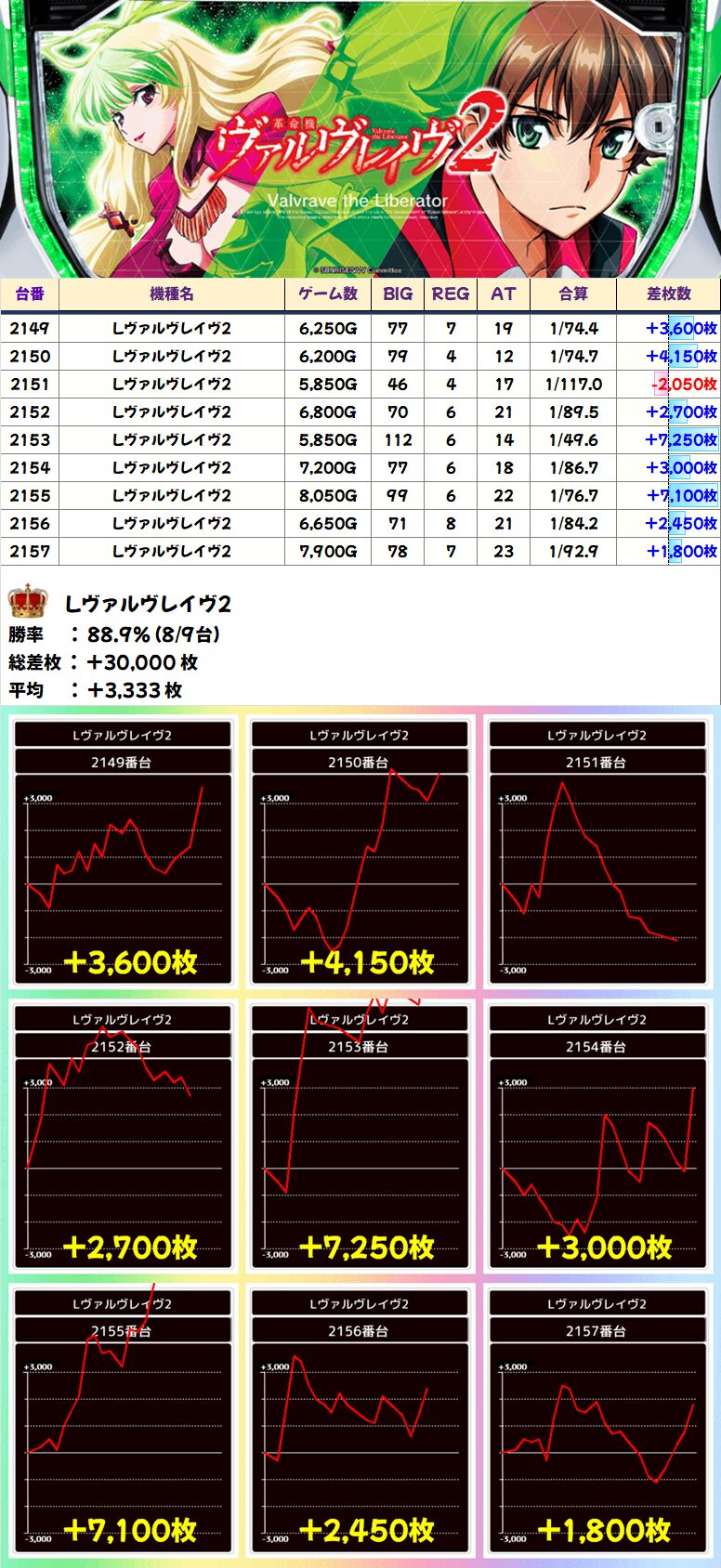 Lヴァルヴレイヴ2 (8/9台+) ➡平均 +3,333枚