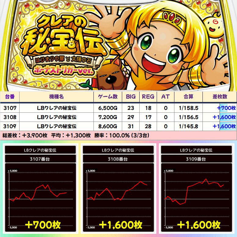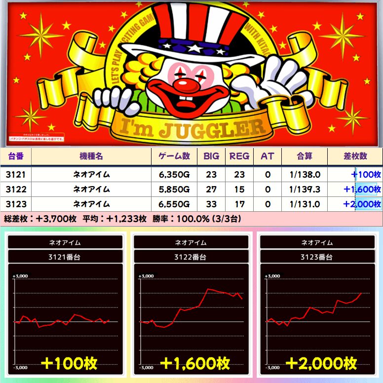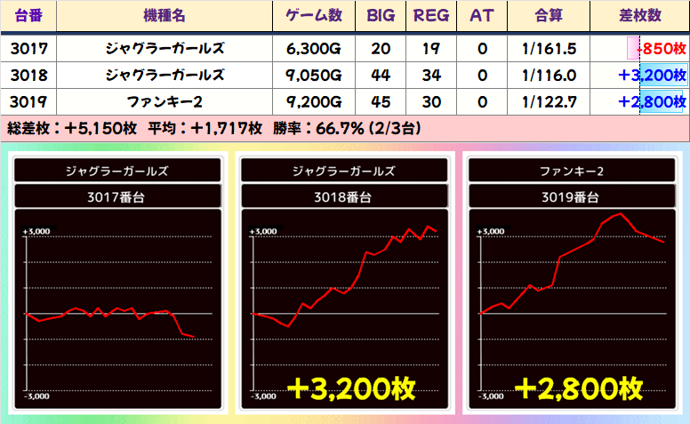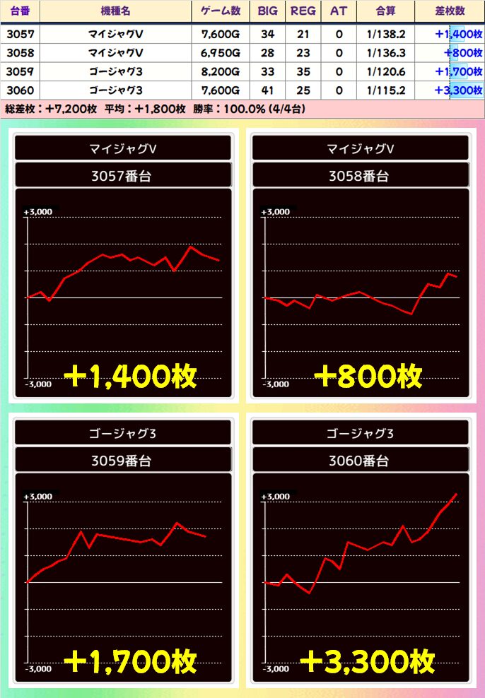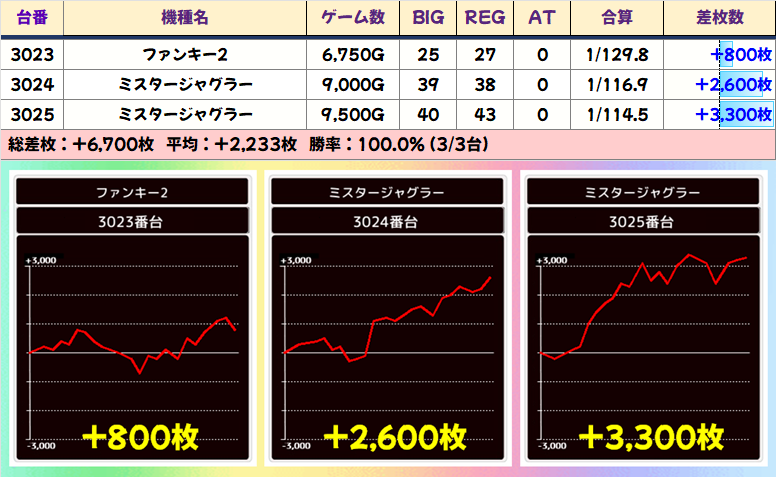 ミスタージャグラー (3/3台+) ➡平均 +2,900枚