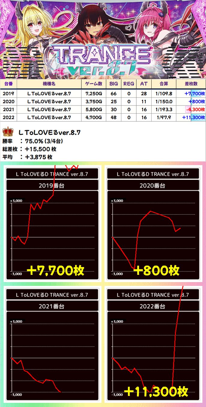 L ToLOVEるver.8.7 (3/4台+) ➡平均 +3,875枚