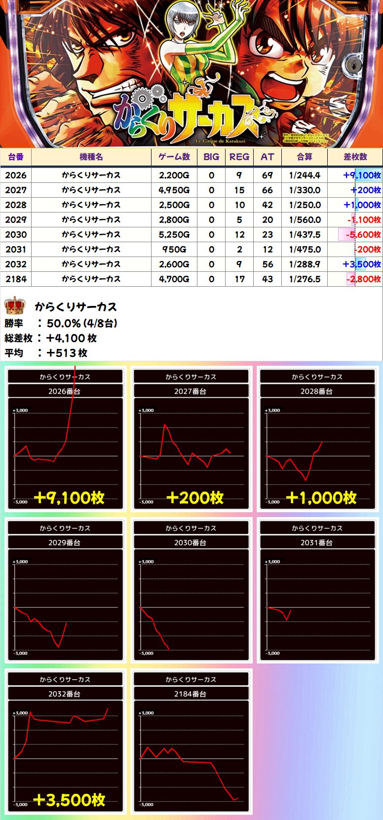 からくりサーカス (4/8台+) ➡平均 +513枚