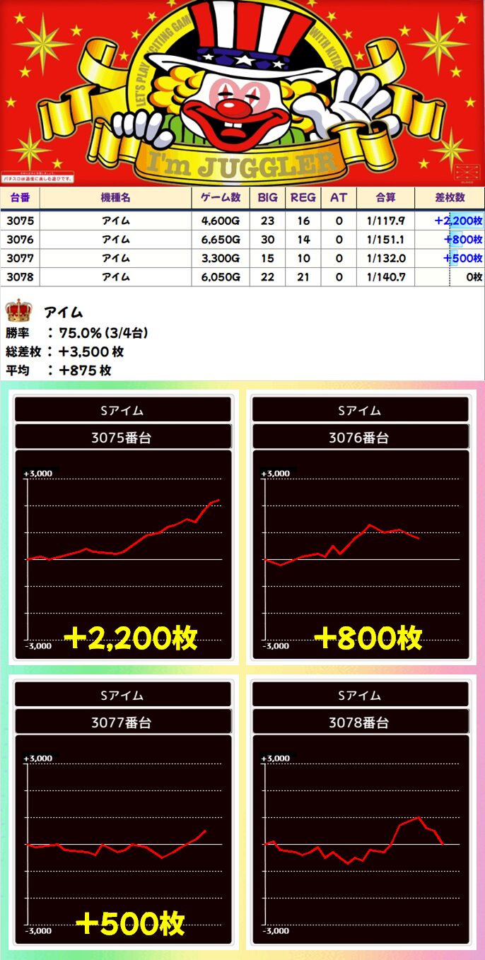 本日は万枚6台!平均490枚という圧巻の結果にふさわしい!