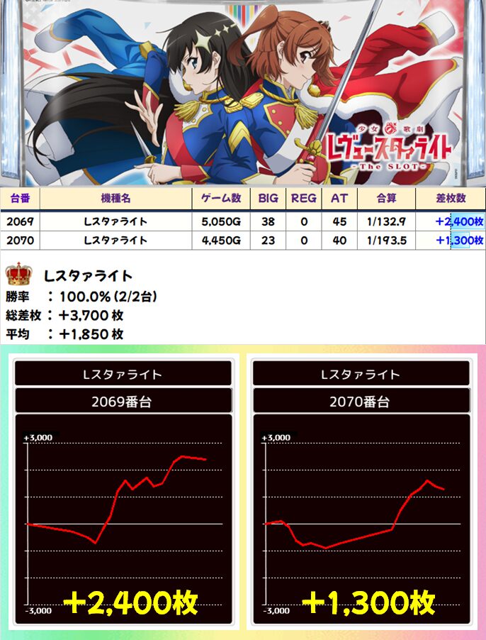Lスタァライト (2/2台+) ➡平均 +1,850枚