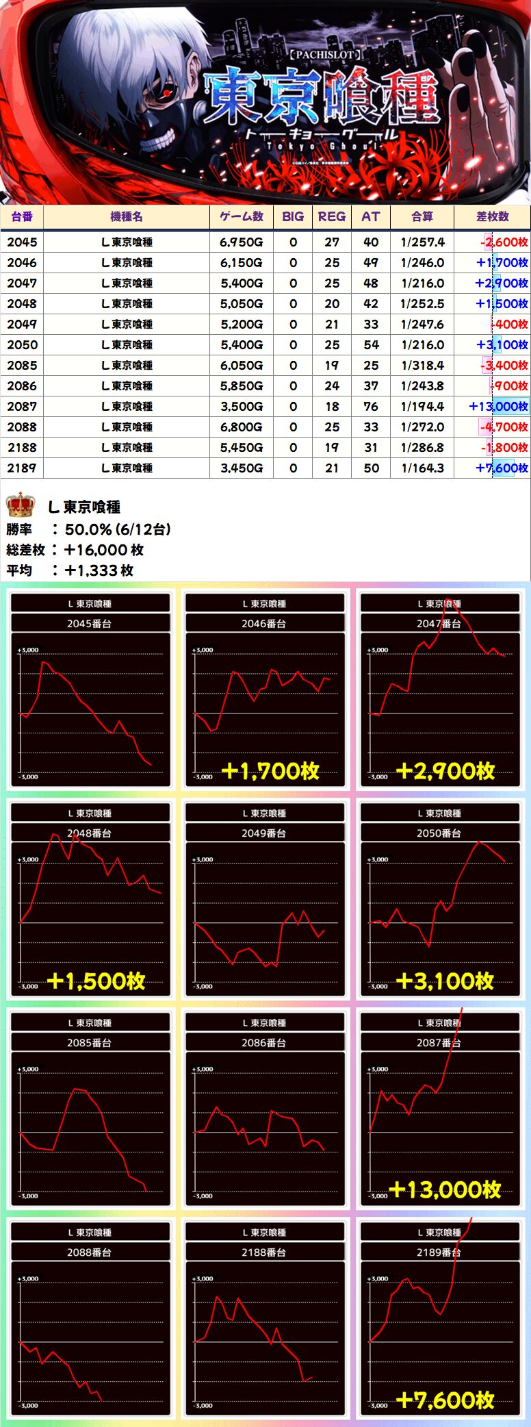 L 東京喰種 (6/12台+) ➡平均 +1,333枚
