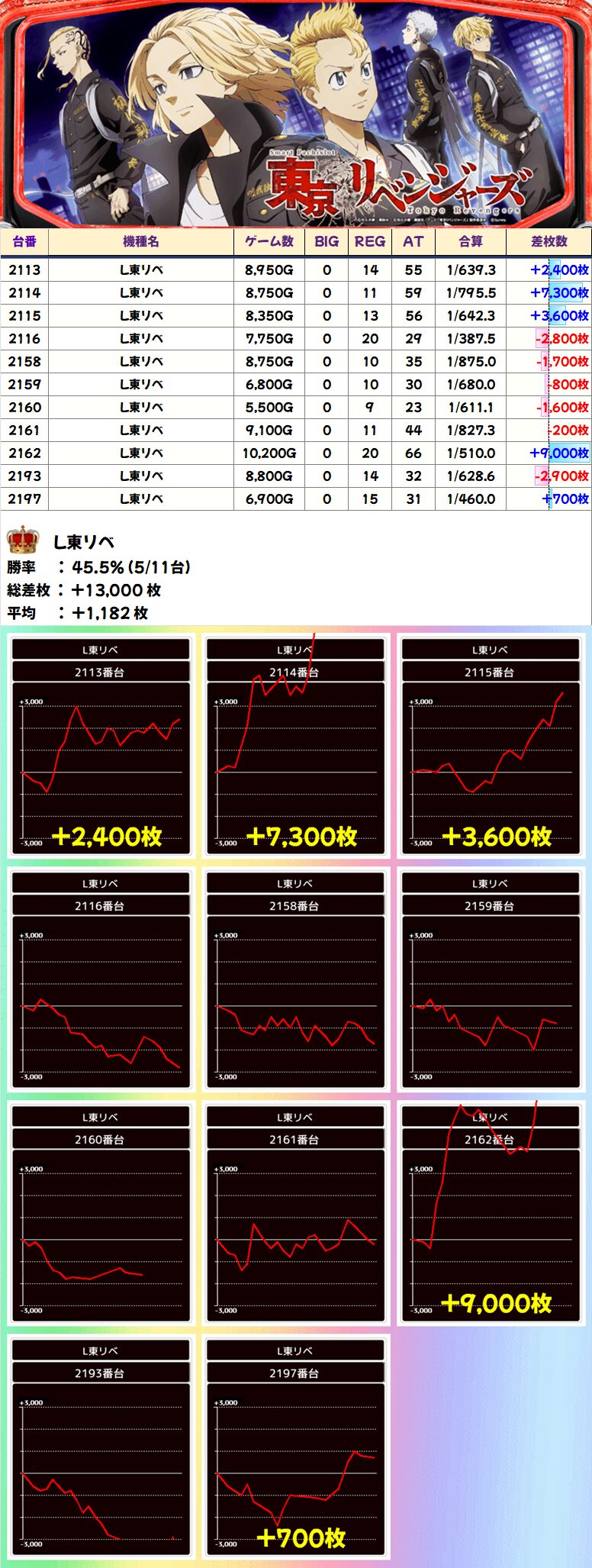 L東リベ (5/11台+) ➡平均 +1,182枚