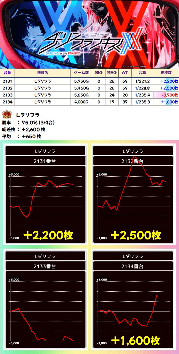Lダリフラ (3/4台+) ➡平均 +650枚